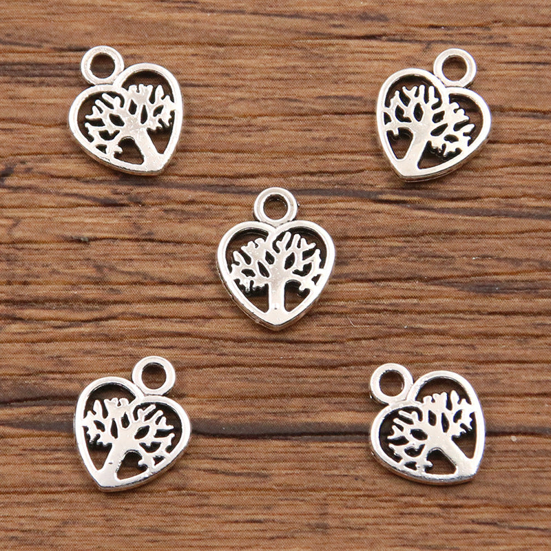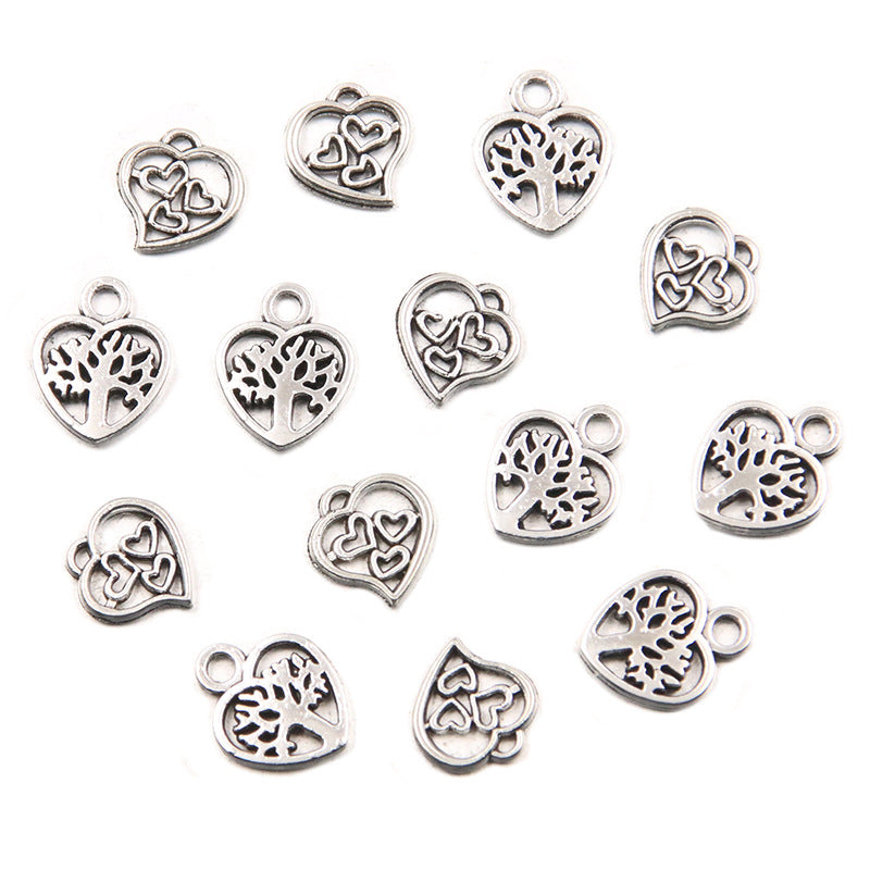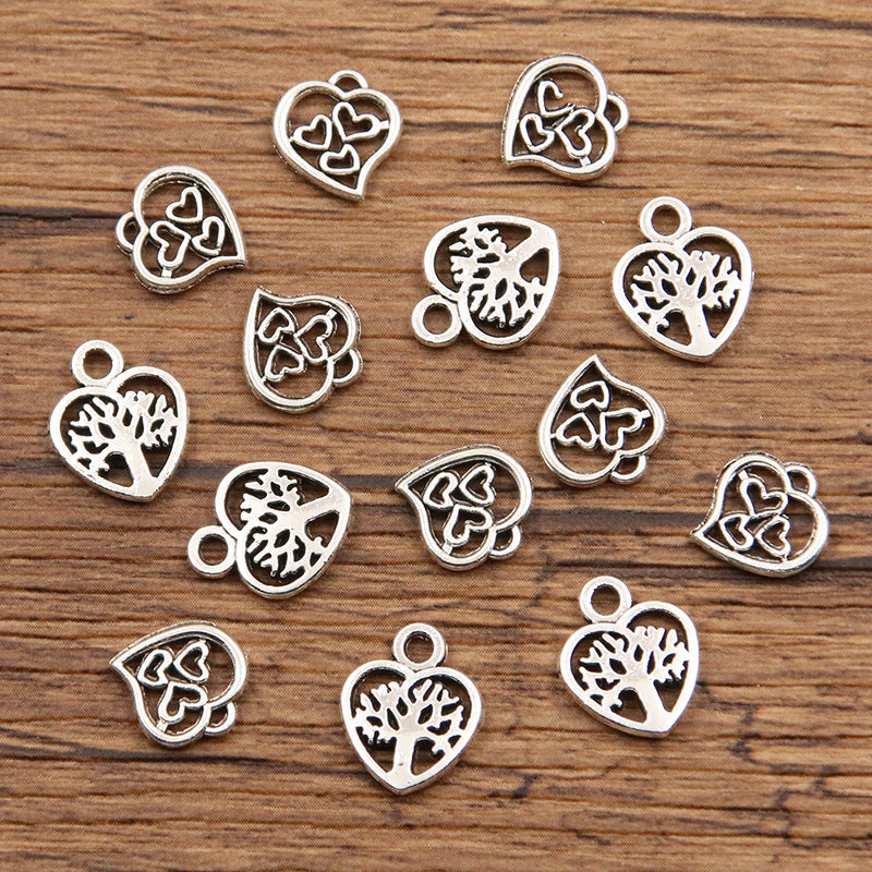 2 Styles Zinc Alloy Jewelry Accessories DIY Hollow Heart Tree Pendant Charm Necklace Bracelet Accessories