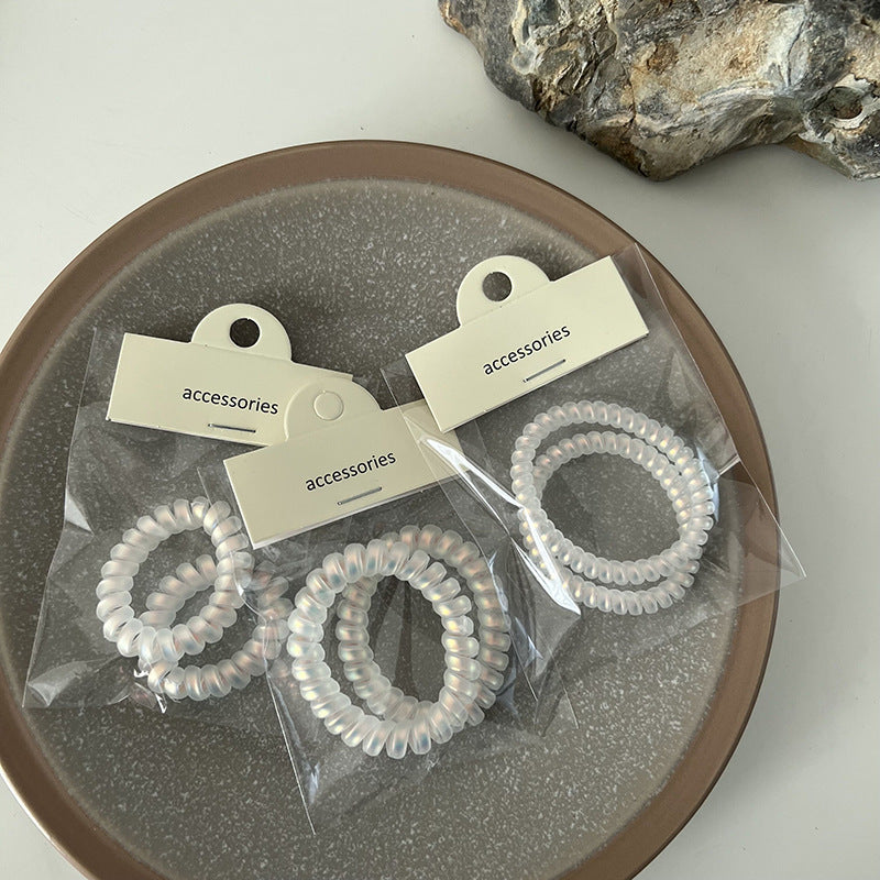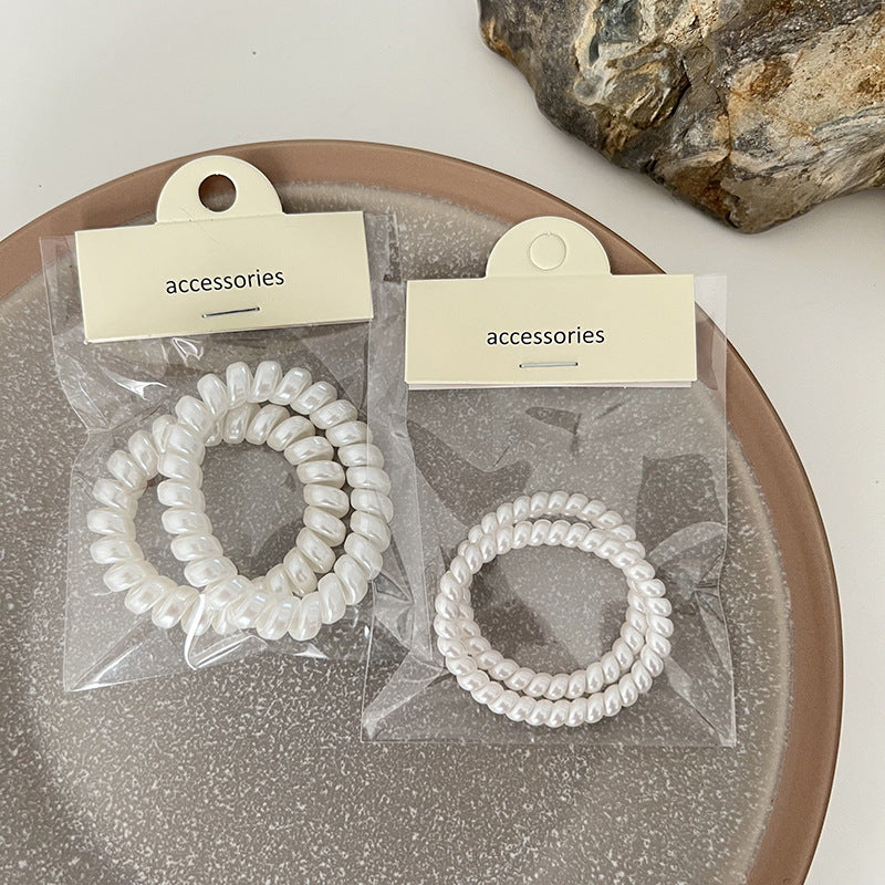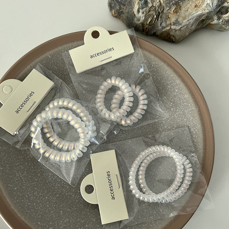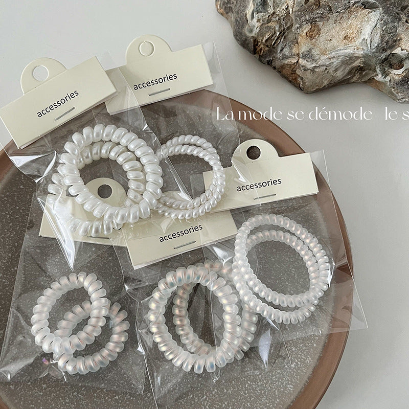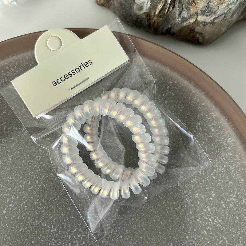 2 Telephone Cords Mermaid White Pearl Glossy Hair Ties Hair Rope Basic Versatile Gentle Ponytail Rubber Band Hair Accessories
