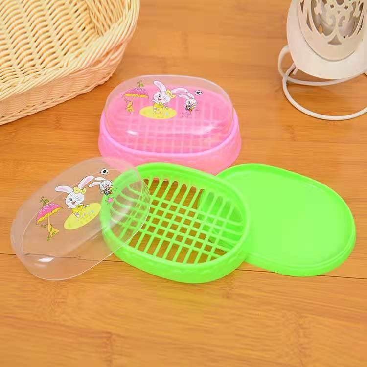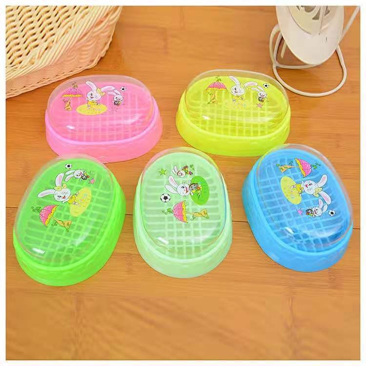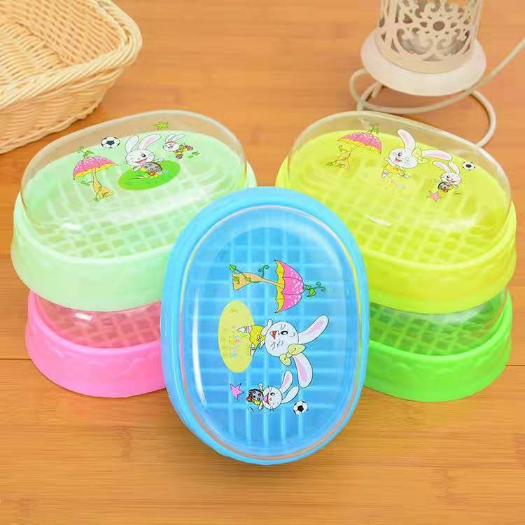 2 yuan shop 903 bags of cartoon plastic drain round transparent water soap box high-end household soap holder soap box