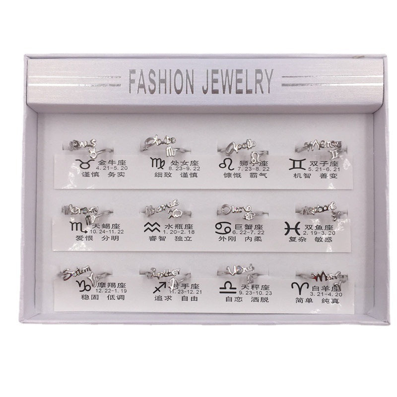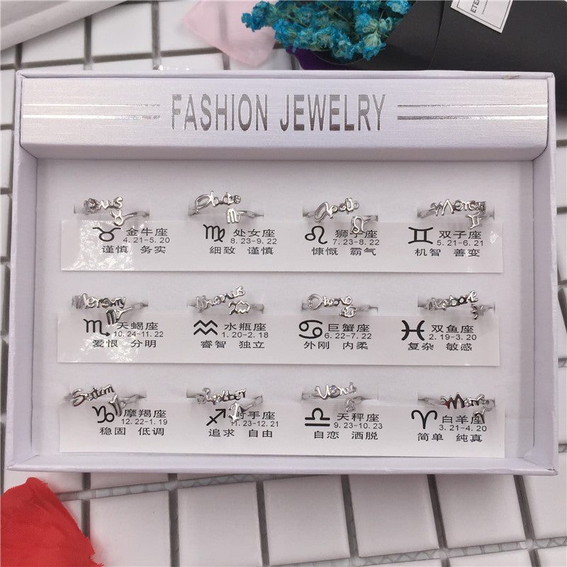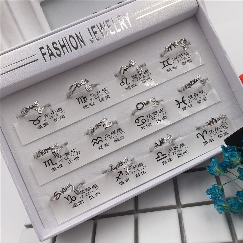 2 yuan store supply 12 constellation ring female creative opening live mouth adjustable size simple student jewelry