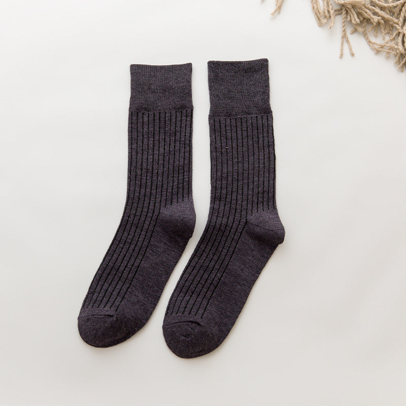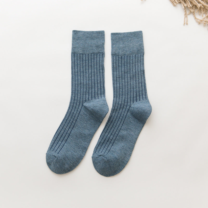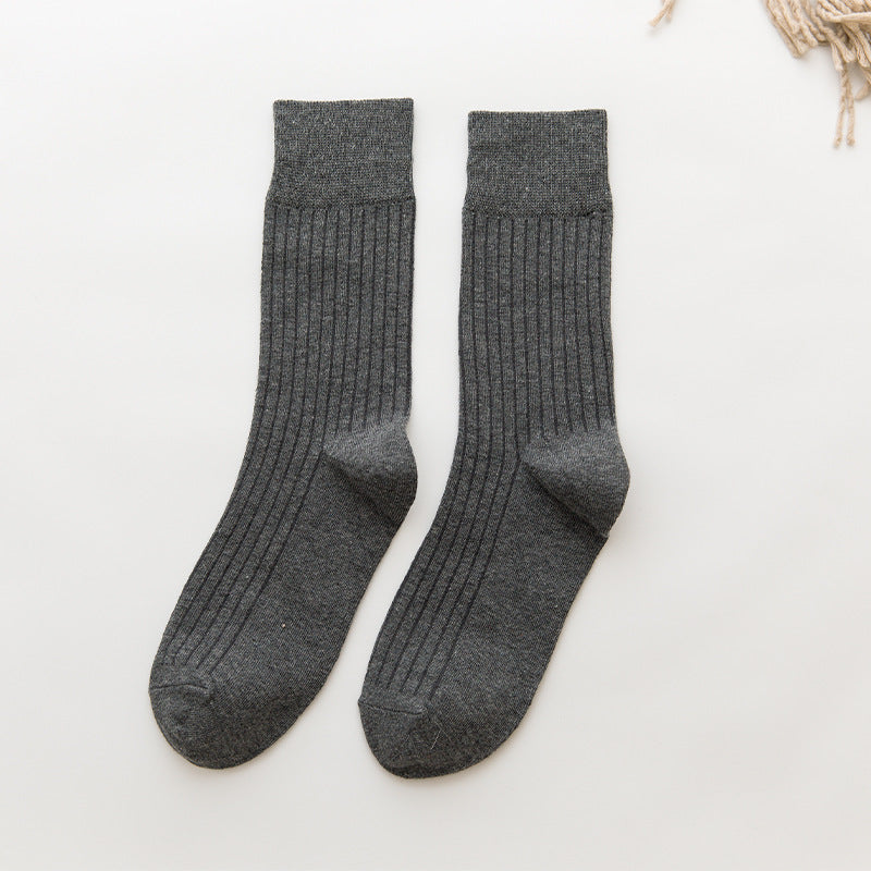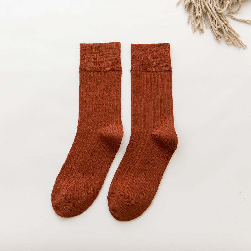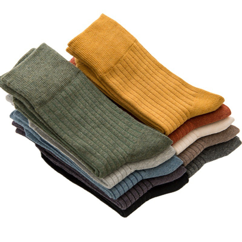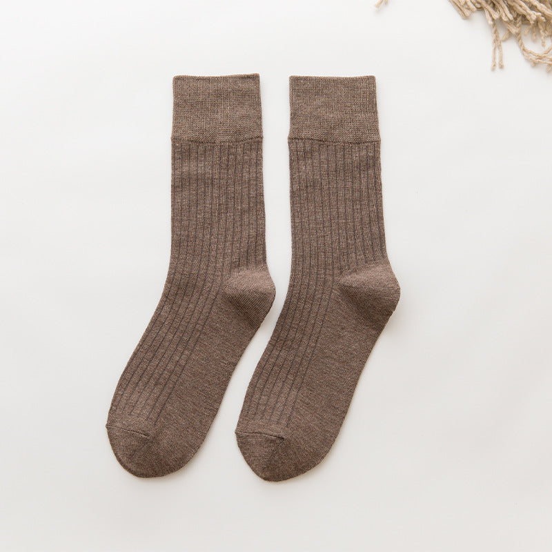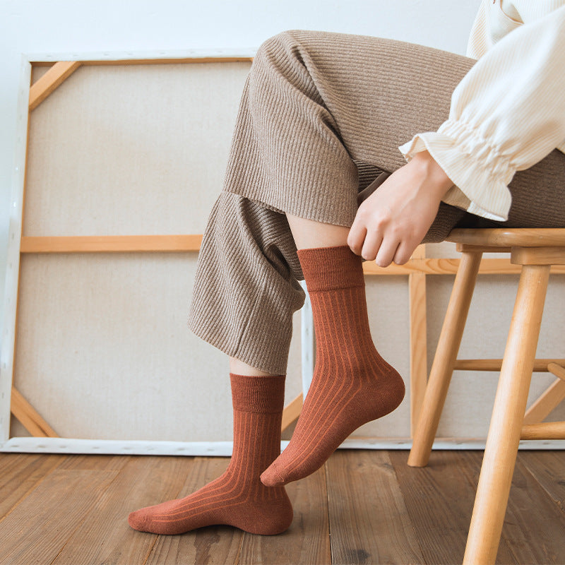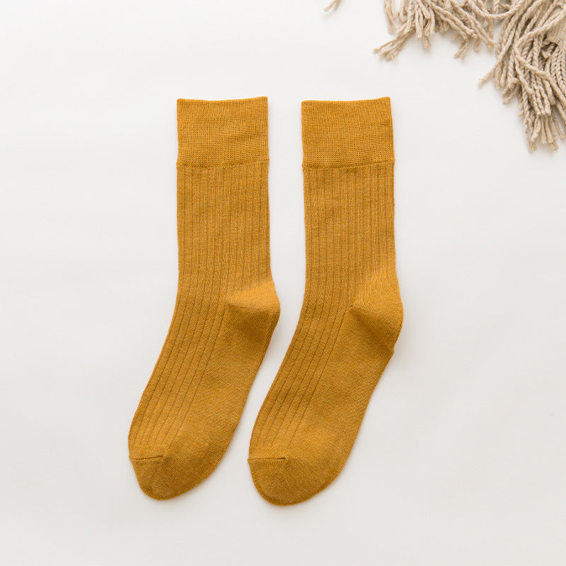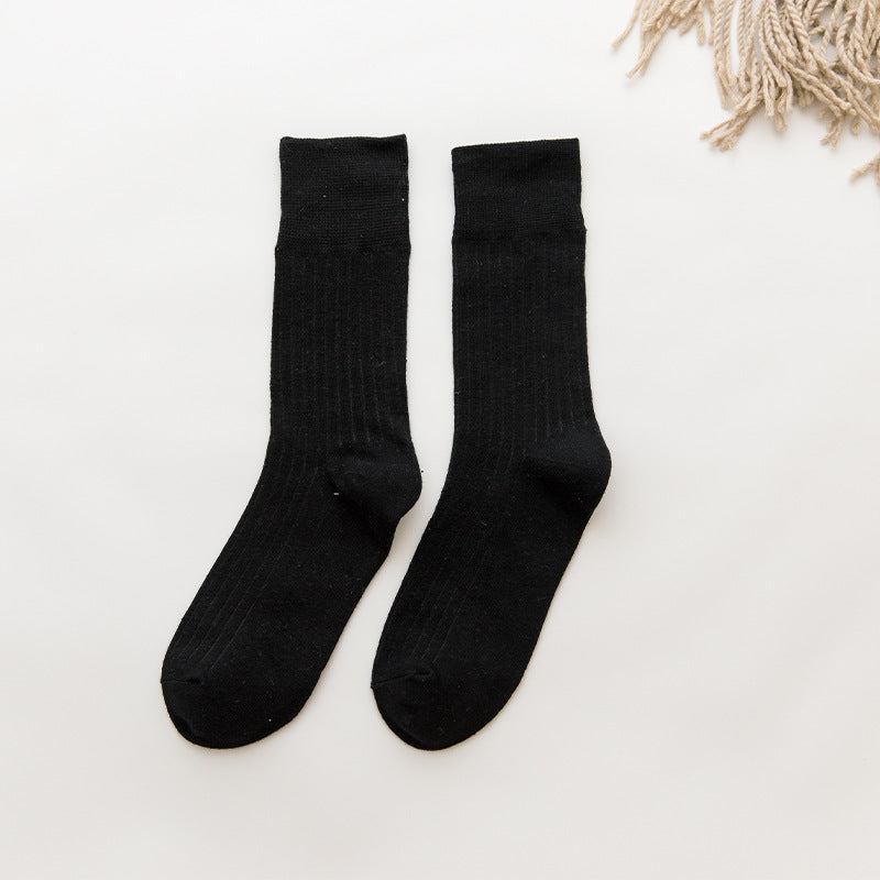 20 Autumn and Winter New Arrivals Pile Socks Women's Japanese Solid Color Vertical Stripes Cotton Middle Tube College Fashion Socks Wholesale