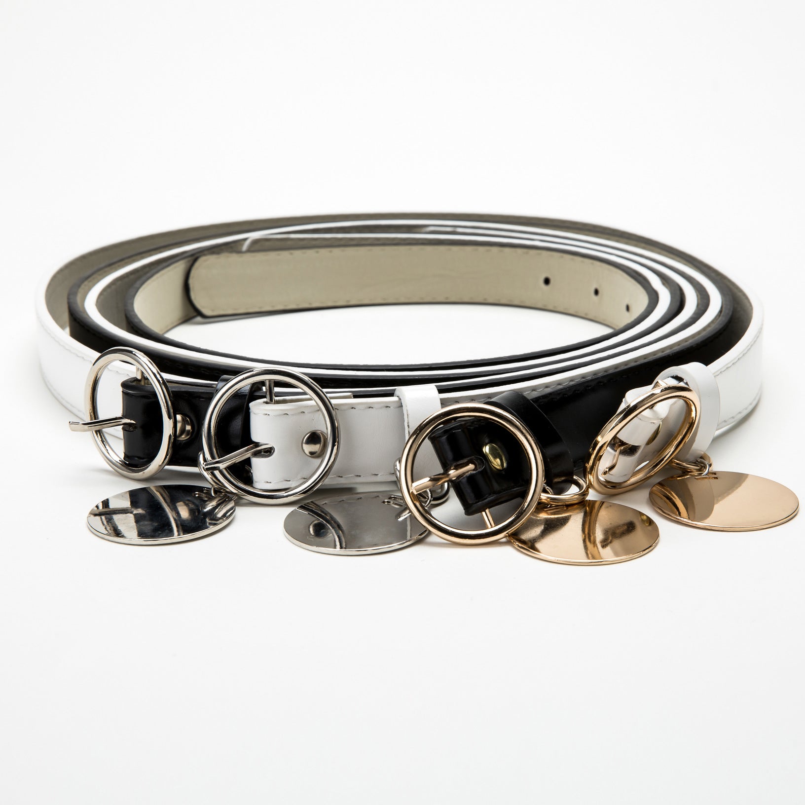color: White (white buckle), black (white buckle), white (gold buckle), black (gold buckle)
