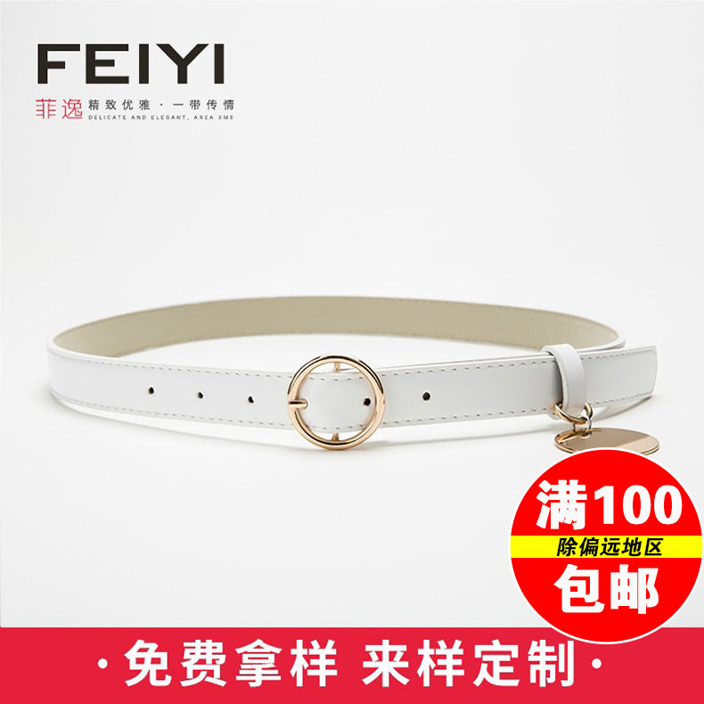 2017 new round buckle belt Girl's imitation leather pin buckle decorative jeans belt Korean fashion all-match thin belt