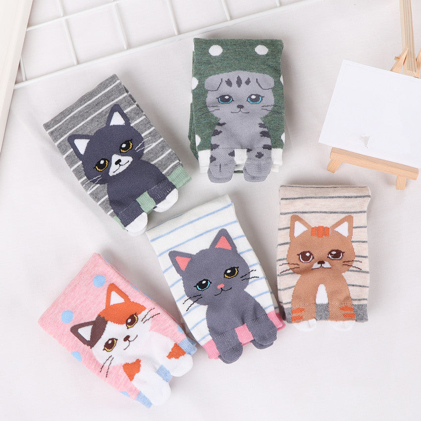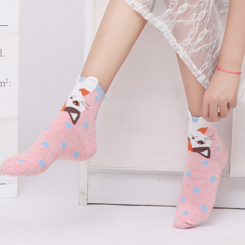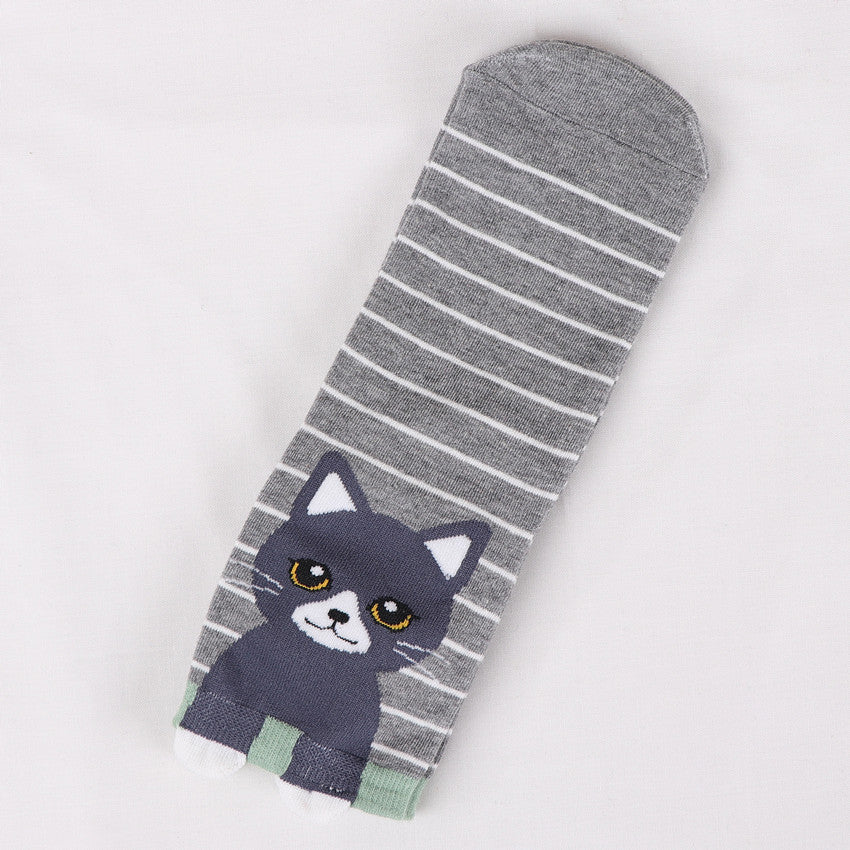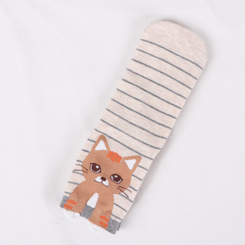 2018 autumn and winter socks new straight socks animal series cat women's socks striped pure - cotton socks women's middle tube