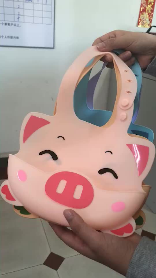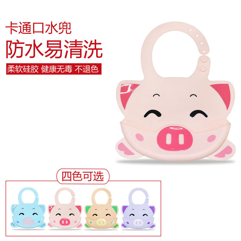 2019 cartoon piggy silicone saliva pocket food grade baby silicone bib bib baby saliva towel