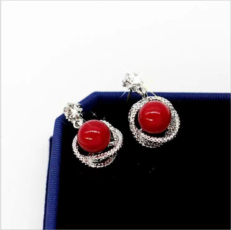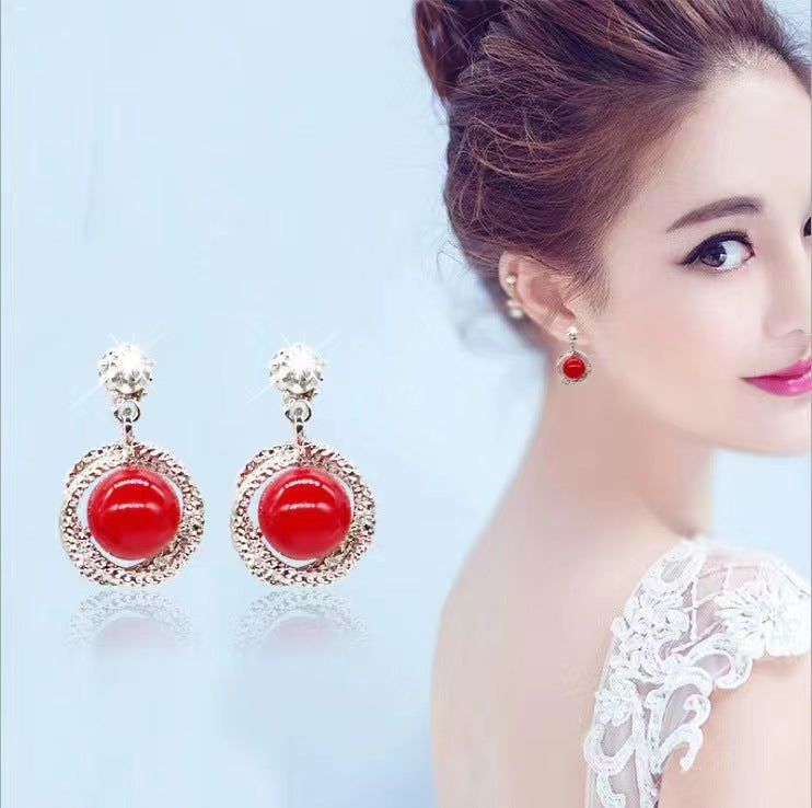 2019 Korean version of the new 925 sterling silver temperament red pearl earrings for women Korean fashion sweet earrings wholesale