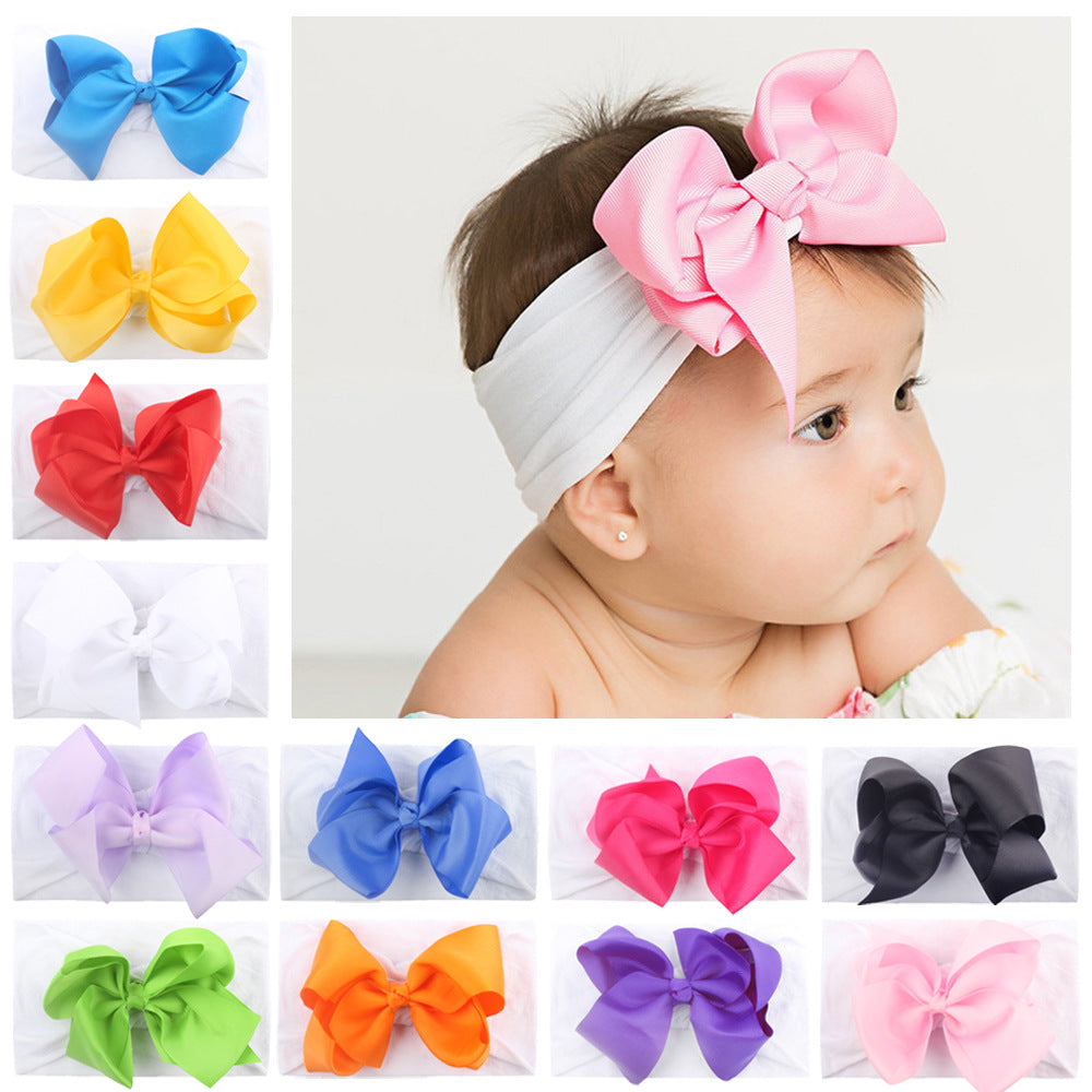 2019 new European and American bowknot children's hair accessories infant baby elastic soft nylon headband wholesale