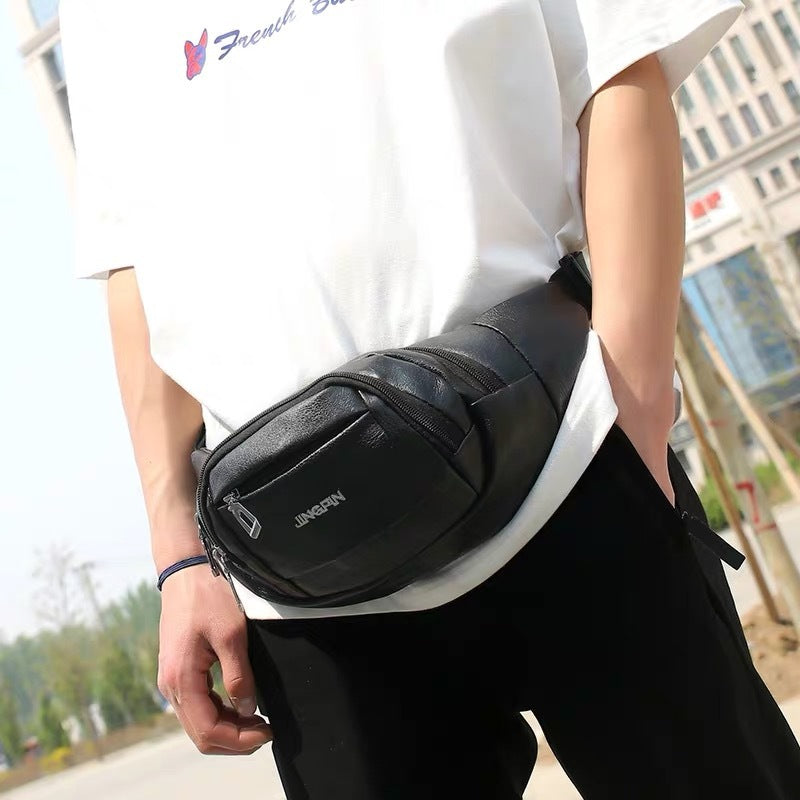2019 new men's waist bag outdoor sports waterproof oblique bag light travel PU mobile phone bag casual large capacity