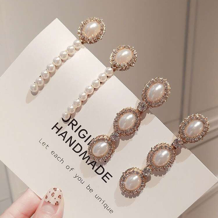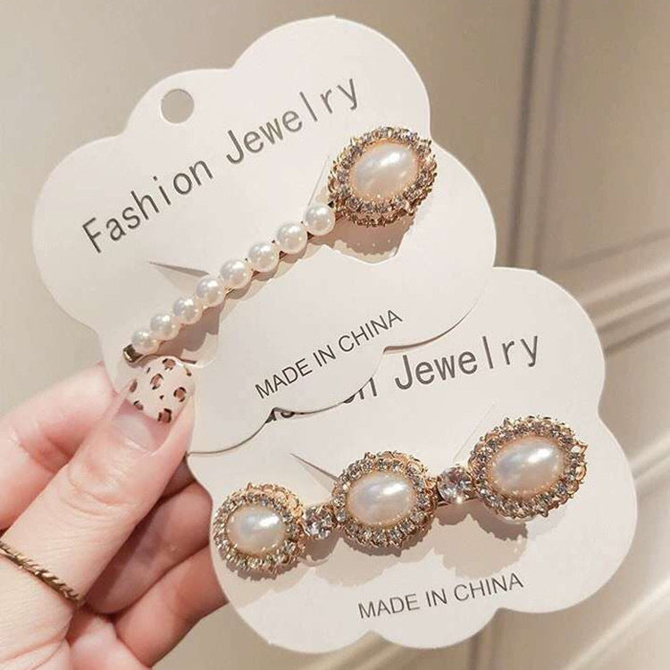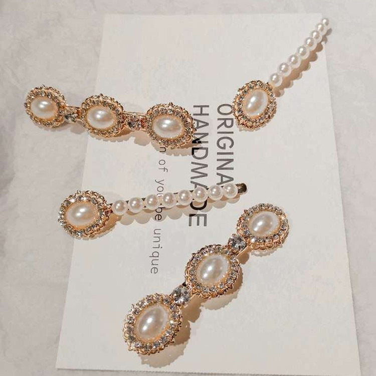 2019 spring lady princess style retro palace style pearl inlaid diamond hairpin duckbill clip hair accessories bangs clip edge clip