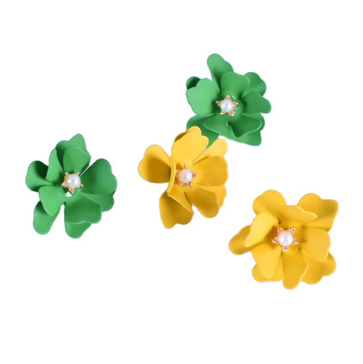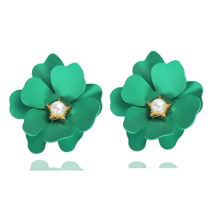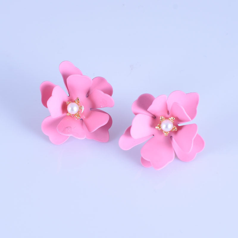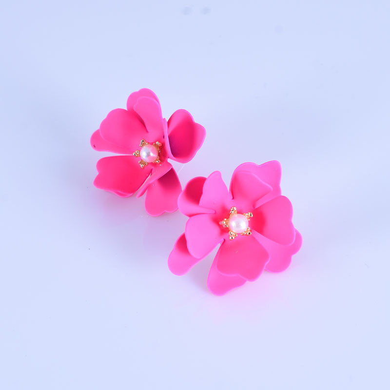 2019 summer dreamy color fresh flower pearl pistil earrings European and American all-match petal earrings