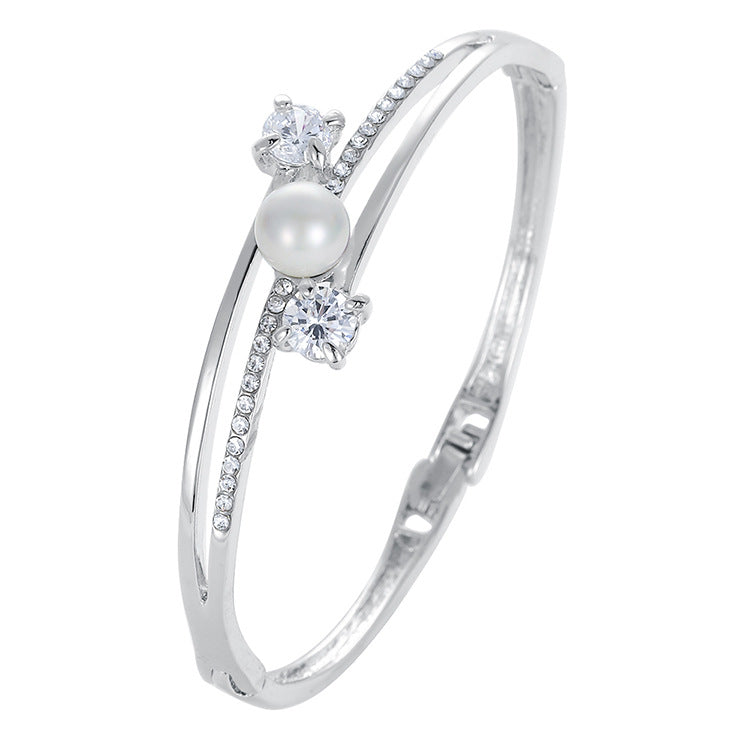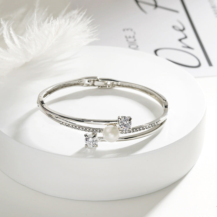 2020 cross-border new product all-match bracelet women's silver bracelet with diamonds and pearls temperament simple hand decoration street stall wholesale