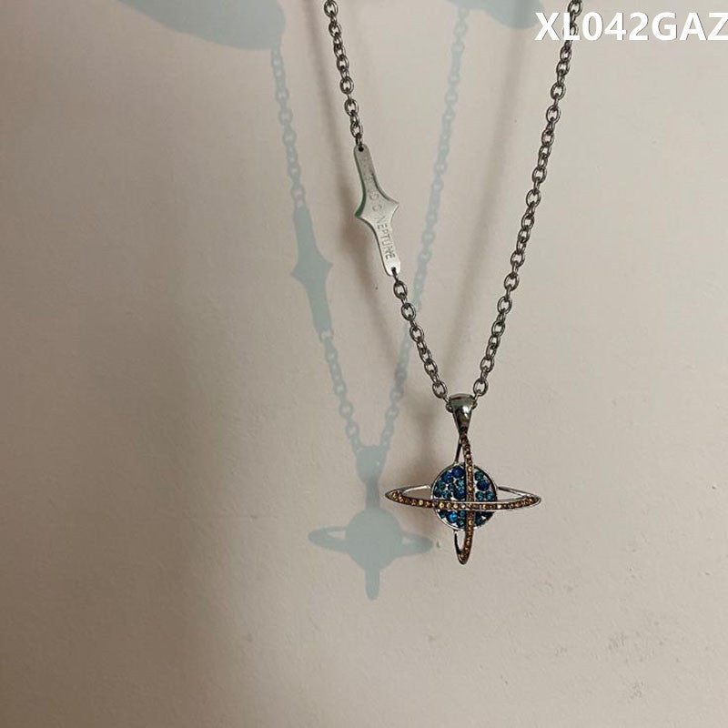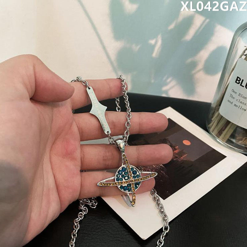 2020 Internet celebrity ins hip-hop diamond design planet universe necklace trend Europe and the United States retro fashion brand men and women jewelry