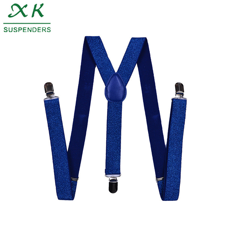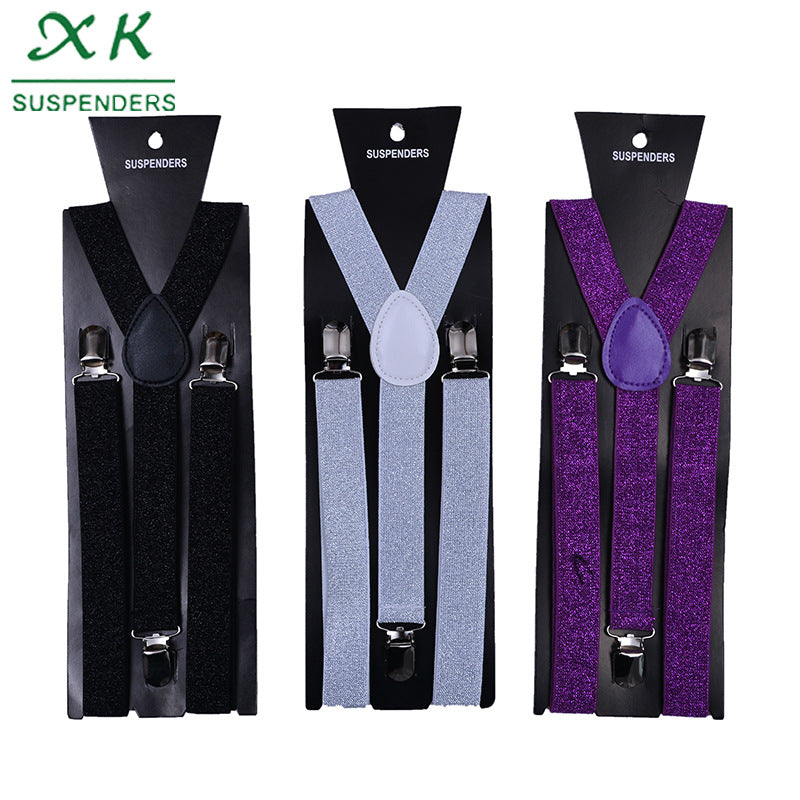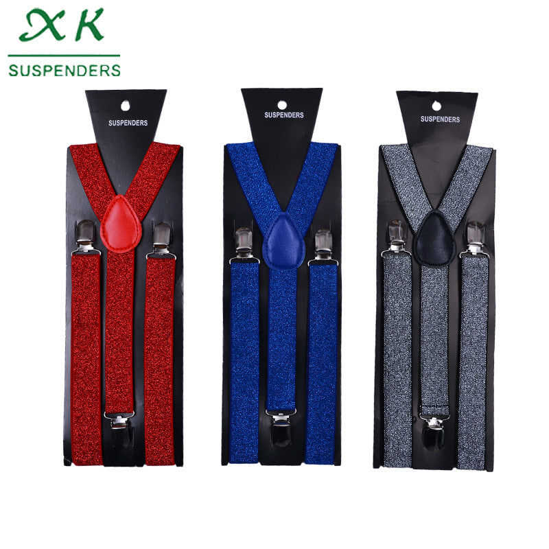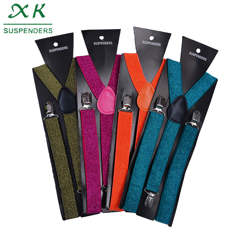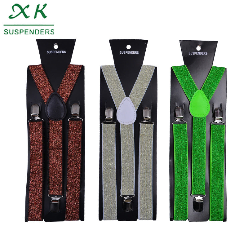 2020 new adult solid color suspenders bright silk glitter elastic three clip suspenders manufacturers wholesale