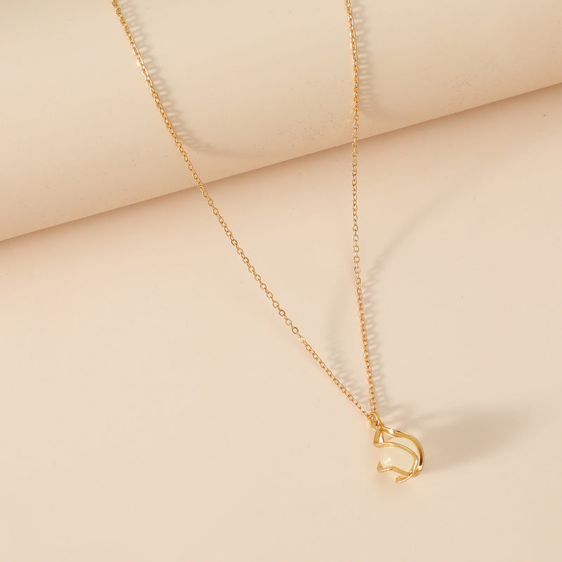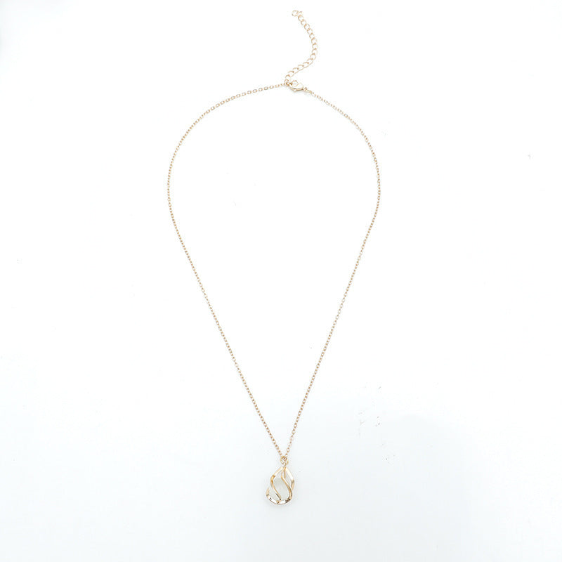 2020 New Alloy Geometric Inlaid Round Crystal Necklace Japanese and Korean Fashion Simple Temperament Versatile Long Necklace