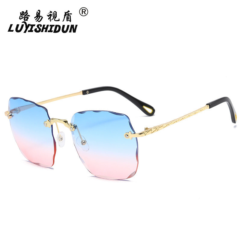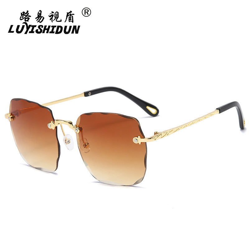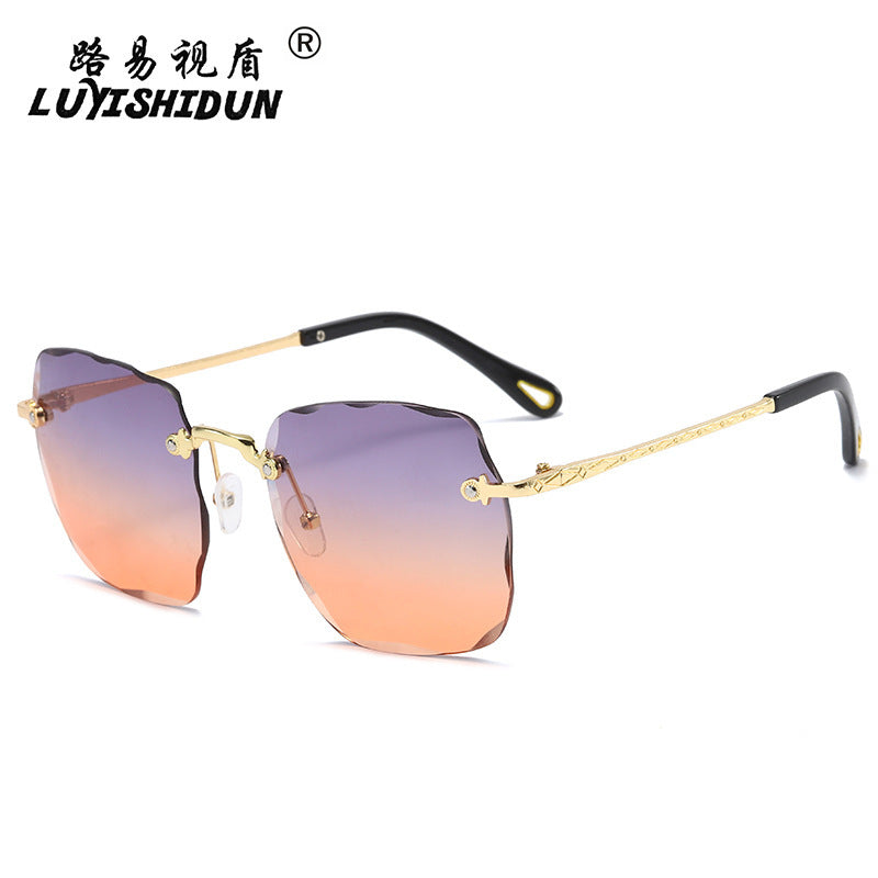 2020 New Arrivals Frameless Cut Edge Square Sunglasses Women's Korean Version Net Red Models Round Face Plain Sunglasses Gradient Film Trend