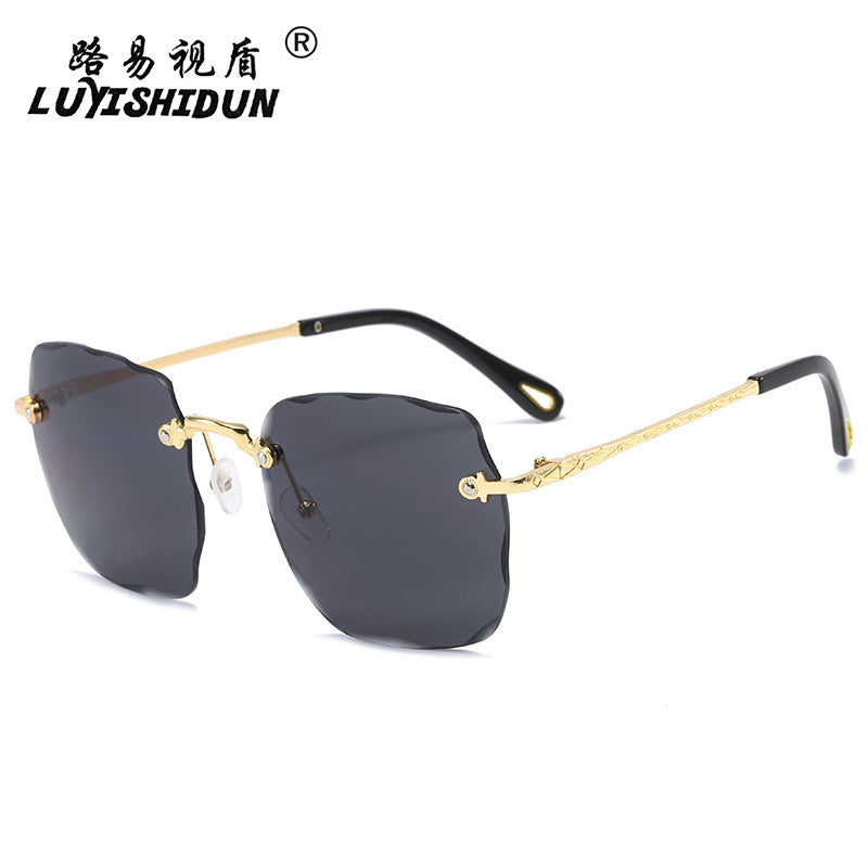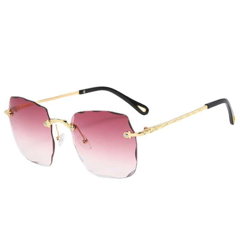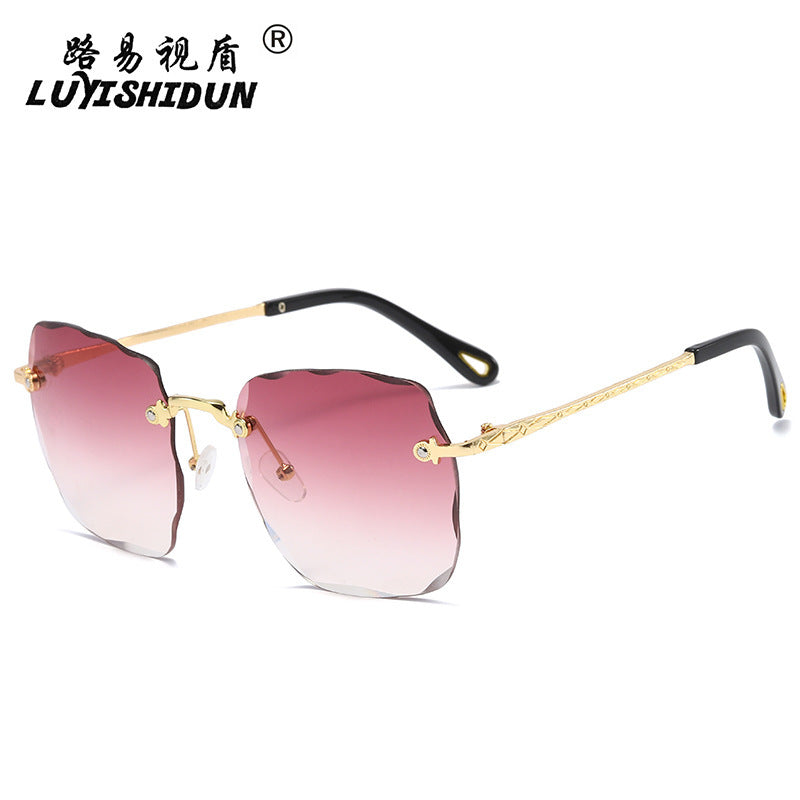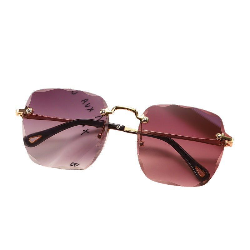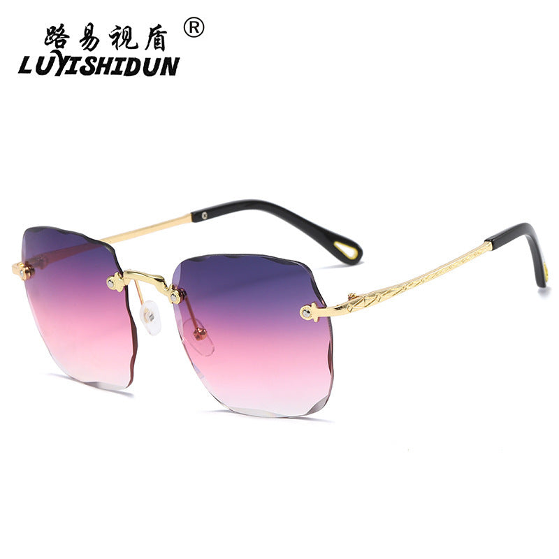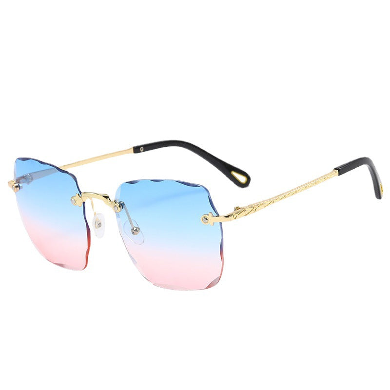 2020 New Arrivals Frameless Cut Edge Square Sunglasses Women's Korean Version Net Red Models Round Face Plain Sunglasses Gradient Film Trend