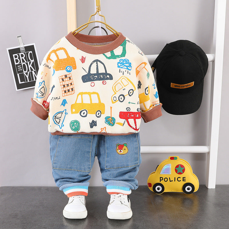 2020 new autumn children's clothing sweater jeans autumn children's long-sleeved suit two-piece set Japanese and Korean boutique foreign trade