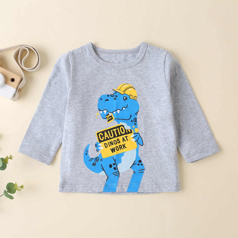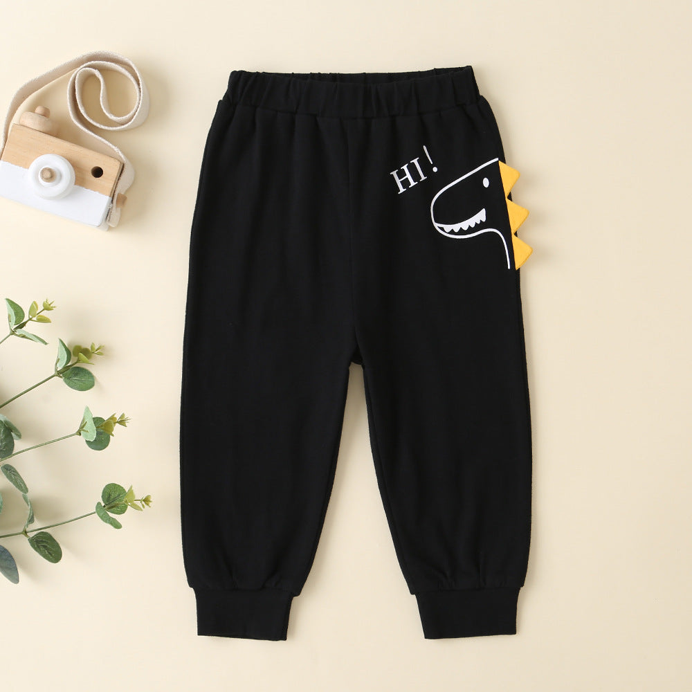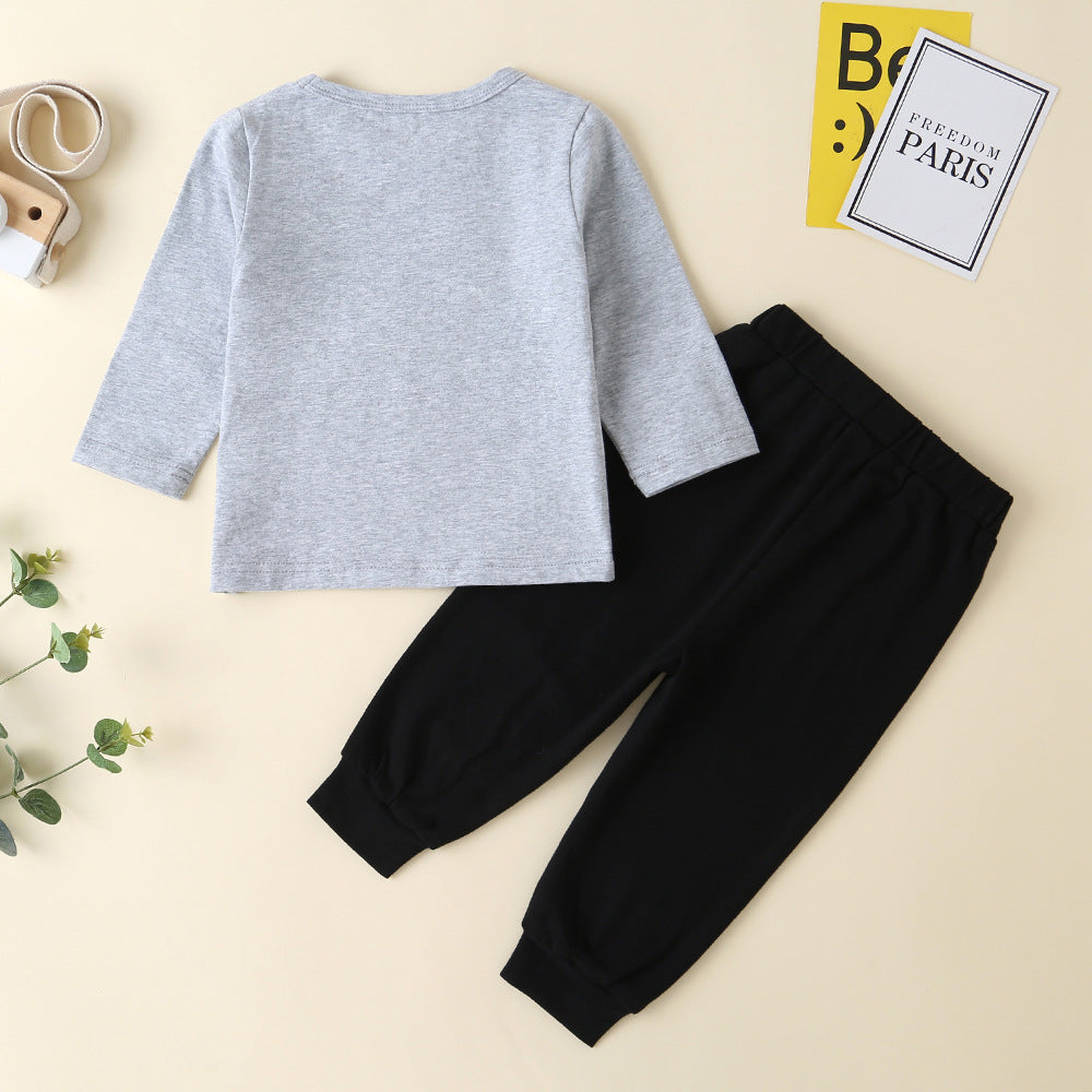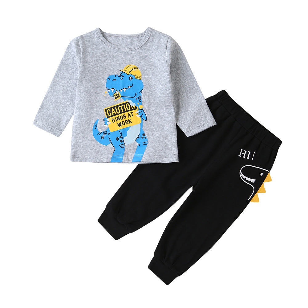 2020 new children's clothing spring and autumn boys' dinosaur gray long-sleeved top + printed black pants suit wholesale