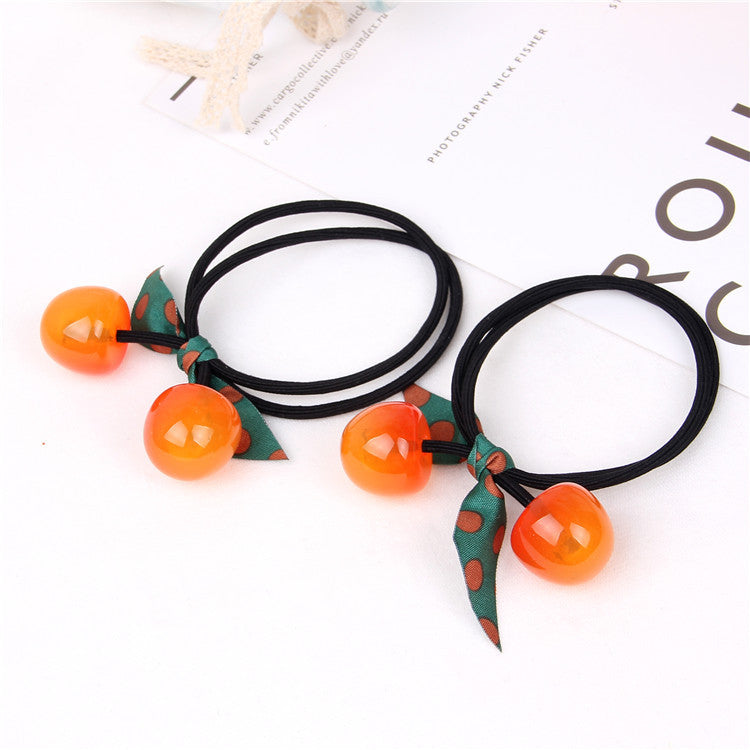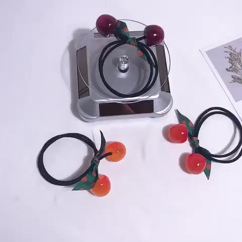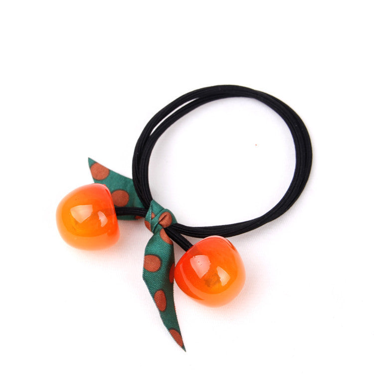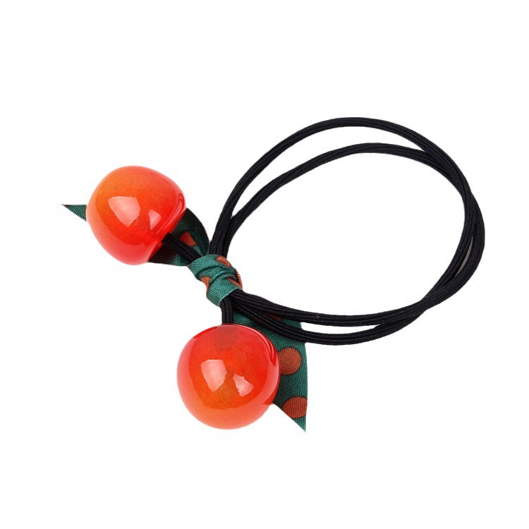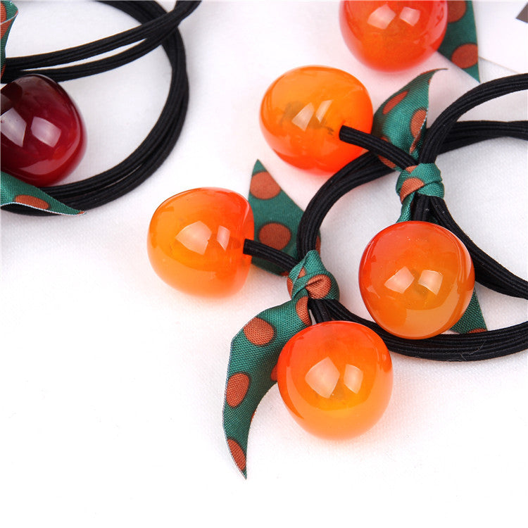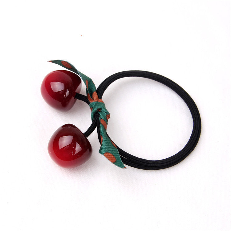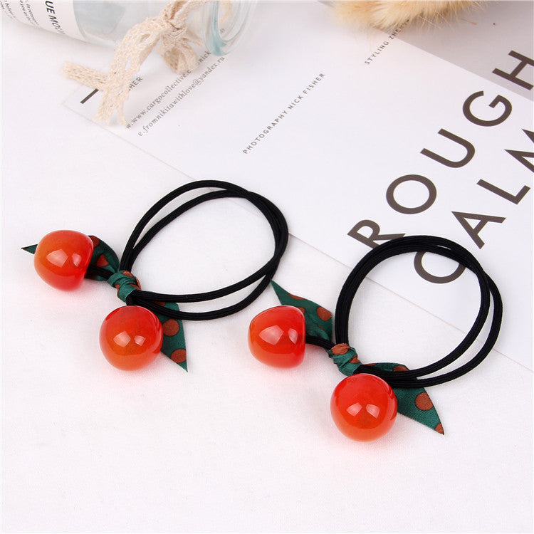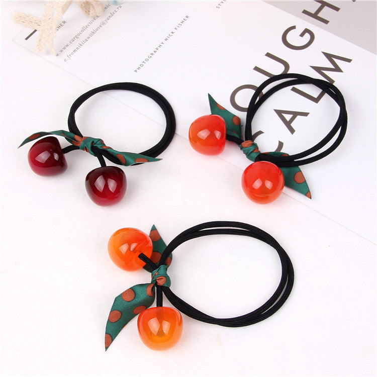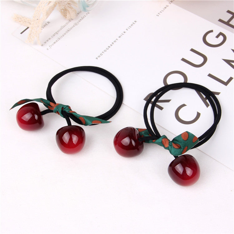 2020 New Cute Cherry Head Rope Net Red Polka Dot Green Ribbon Rubber Band Mori Girl Hair Circle Tie Hair Rope Wholesale