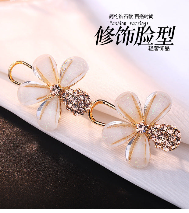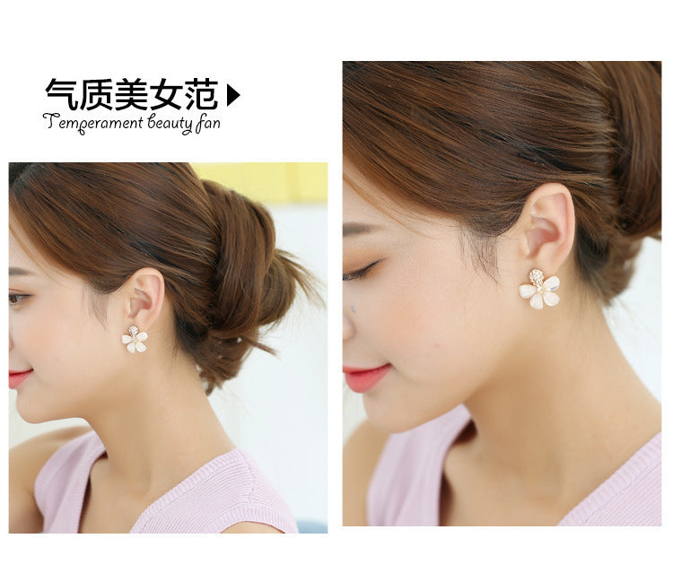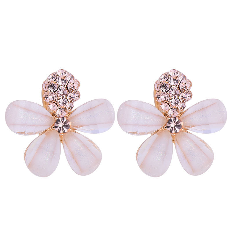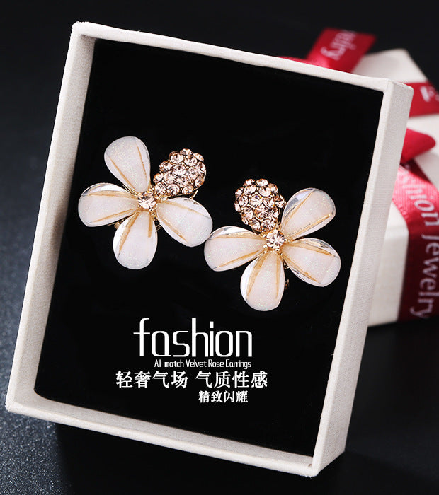 2020 new Japanese style beautiful diamond-studded natural five-leaf flower crystal earrings in the rain glass flower full diamond earrings silver needles