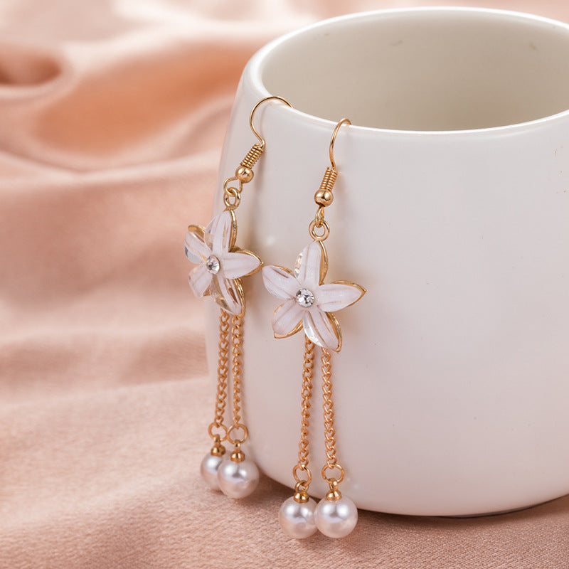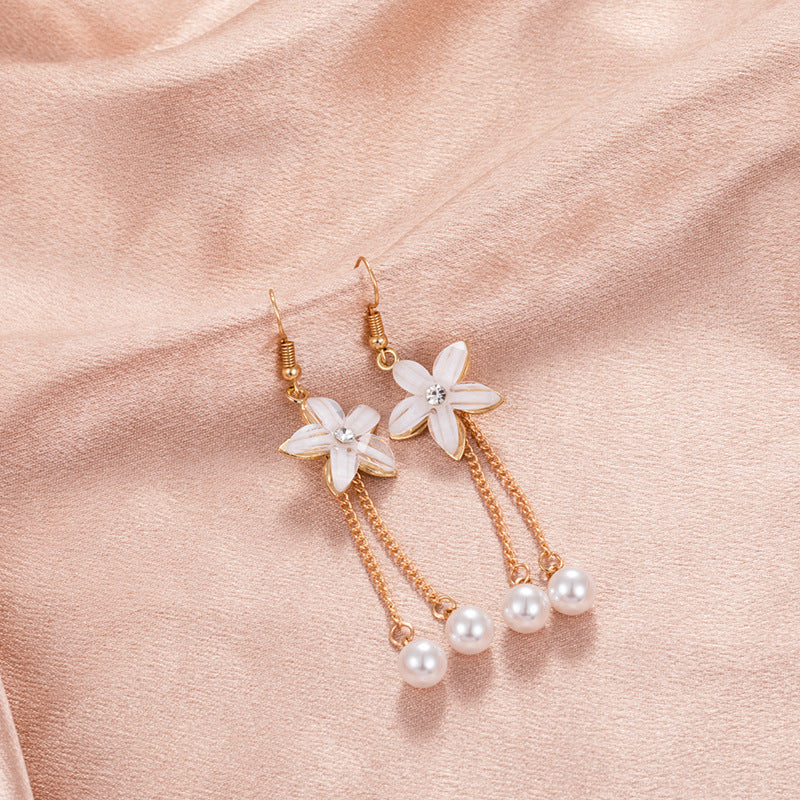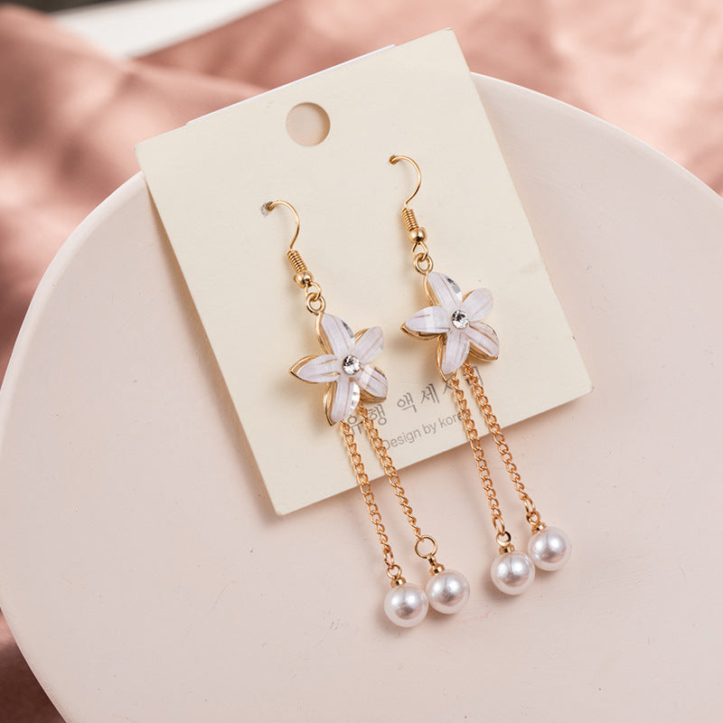 2020 new Korean hook flower long pearl tassel earrings women's Japanese and Korean version of the same star earrings earrings