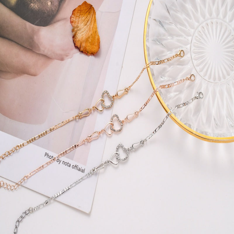 2020 New Love Bracelet Stainless Steel Fashion Hollow Diamond Heart Shaped Foot Anklet Girlfriend Couple Accessories