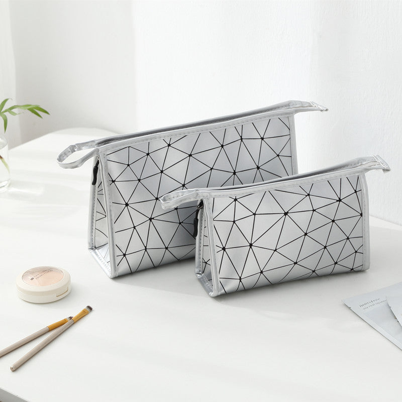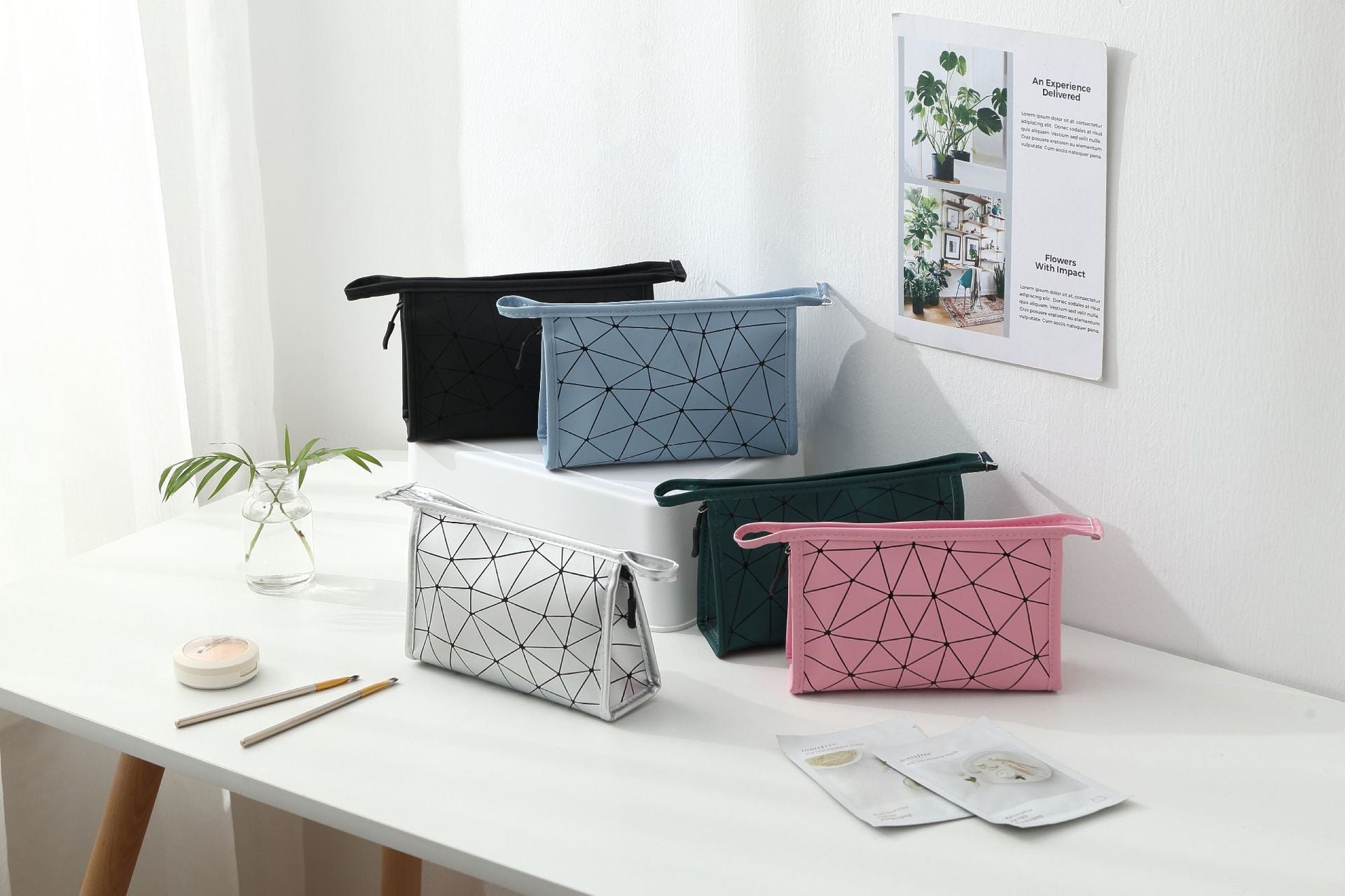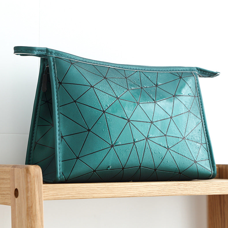 2020 new rhombus cosmetic bag PU leather geometric rhombus storage bag knock fire portable travel waterproof washing bag