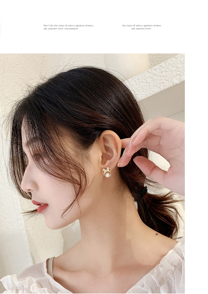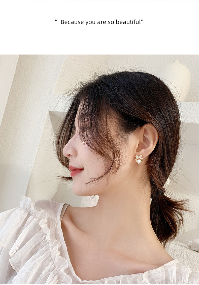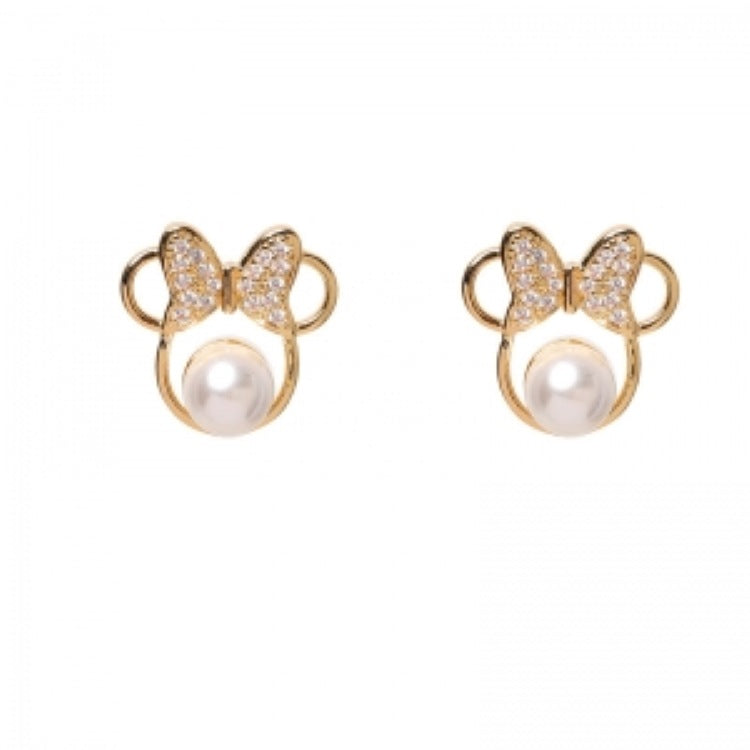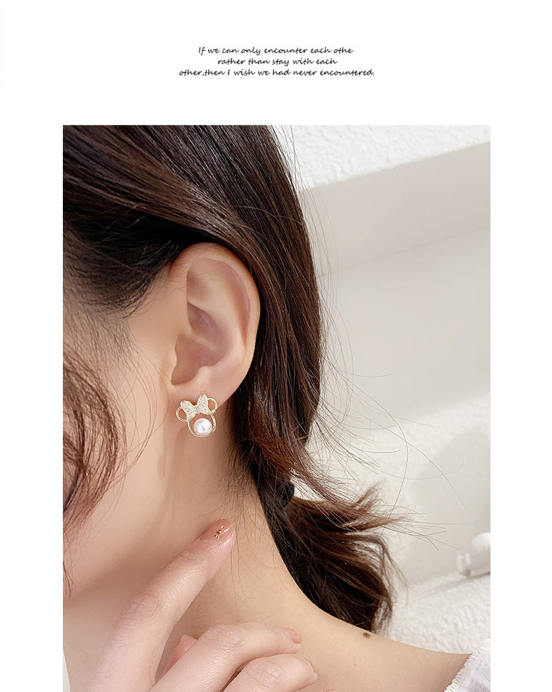 2020 New S925 Silver Needle Korean Style Diamond-studded Cute Bowknot Pearl Mickey Fashion Internet Celebrity Stud Earrings