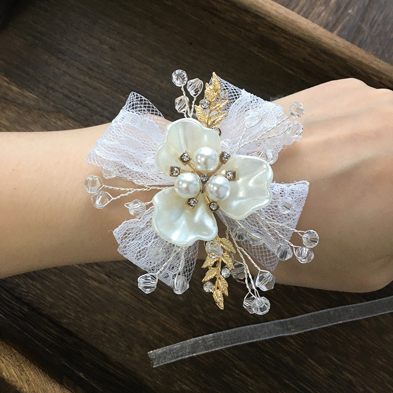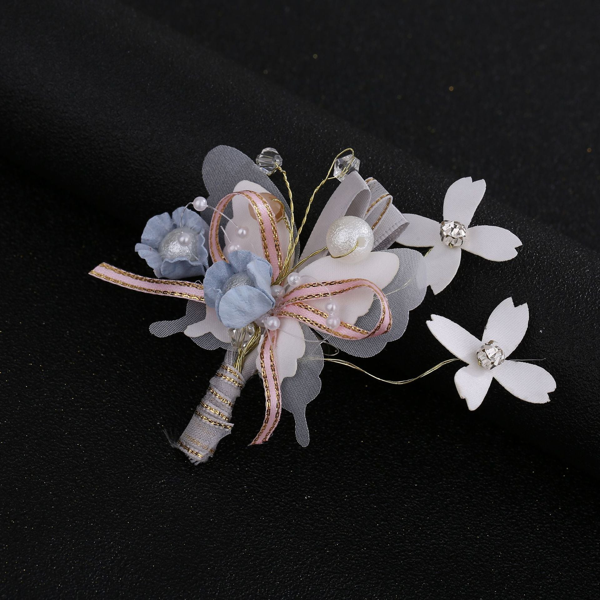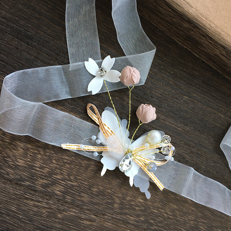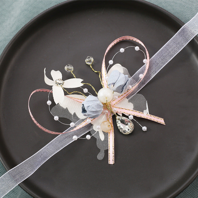 color : A complete set of 3 pieces, a single blue hair band, a refined version of short hair accessories, a blue bracelet, blue boutonniere, white wrist flower, purple bracelet, small blue bracelet, small pink bracelet, blue boutonnier e ,pink boutonniere ,pink long hair band