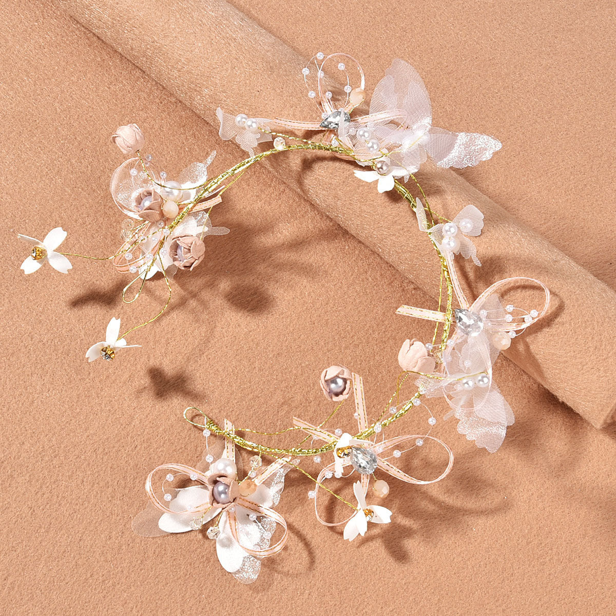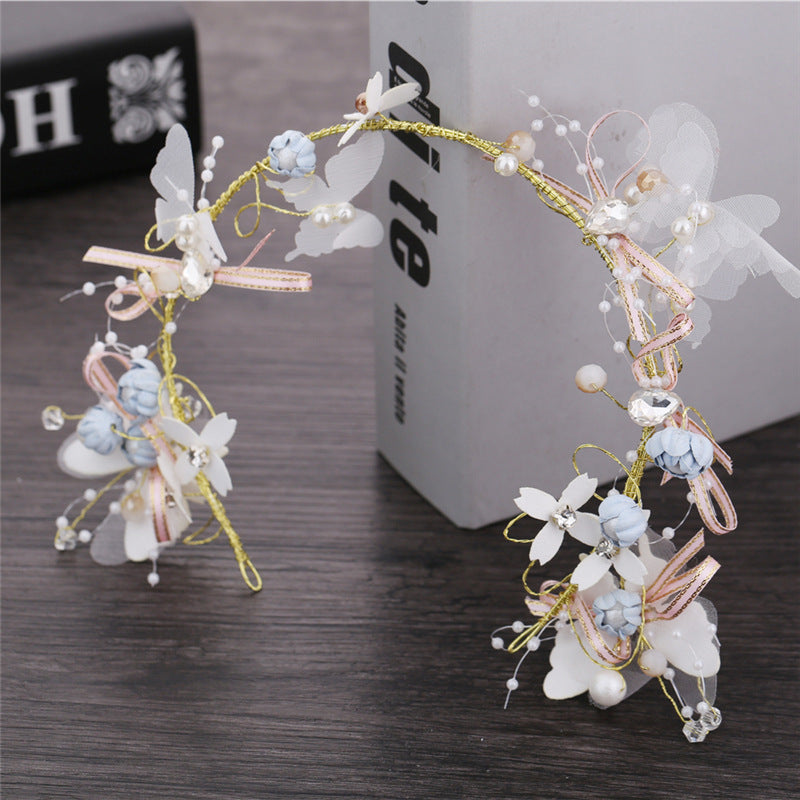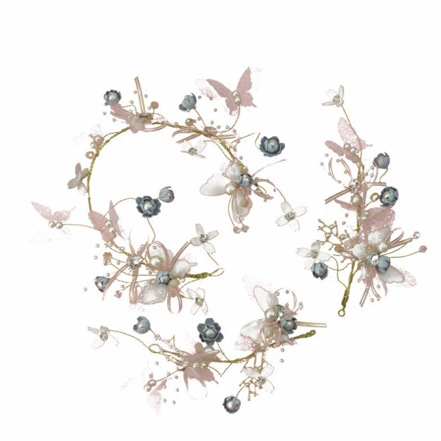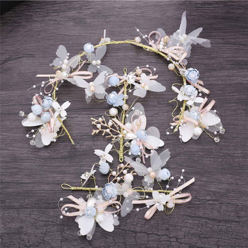 2020 new super fairy color headband crown wreath side clip bridal headdress juan yarn butterfly flower jewelry set