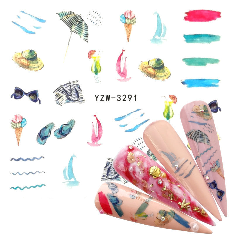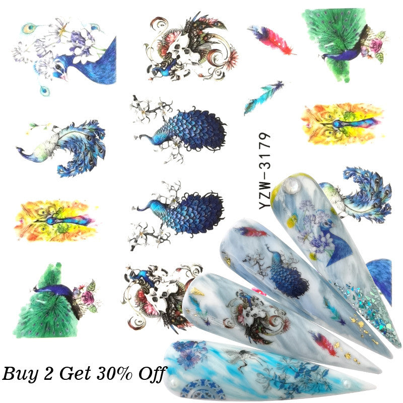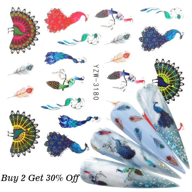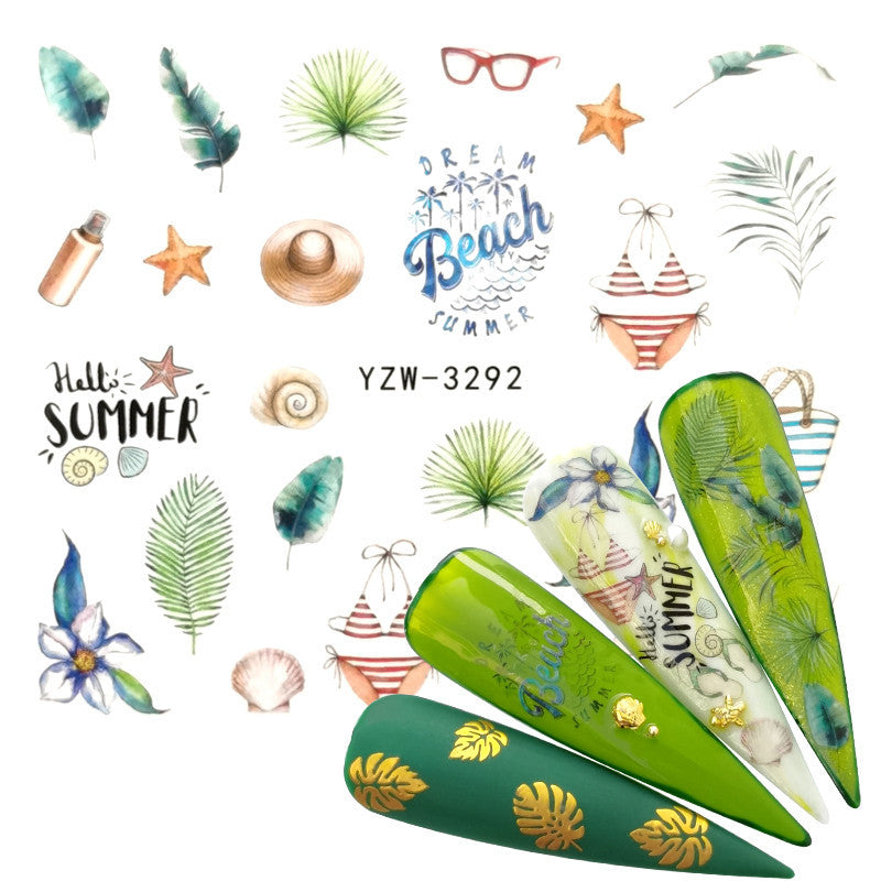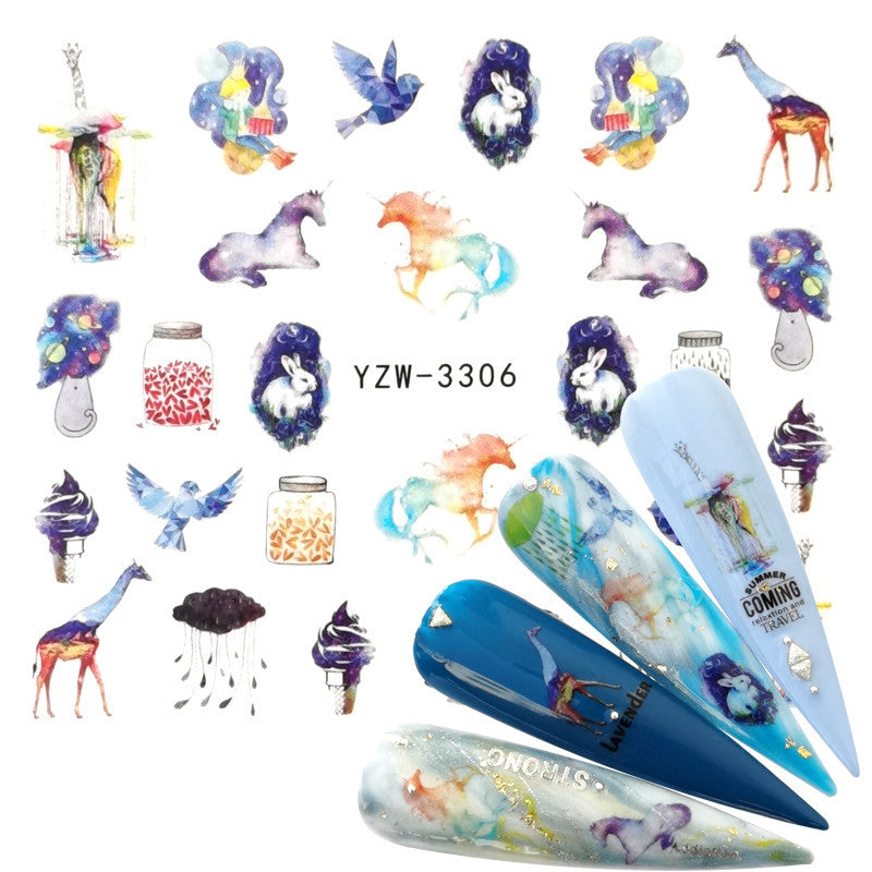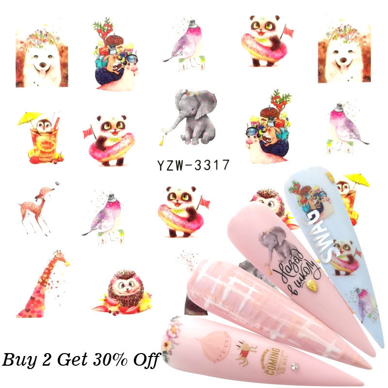 2020 Summer Beach Slippers Nail Art Stickers Peacock Giraffe Elephant Animal Animal Stickers Planet 3D Puzzle Stickers