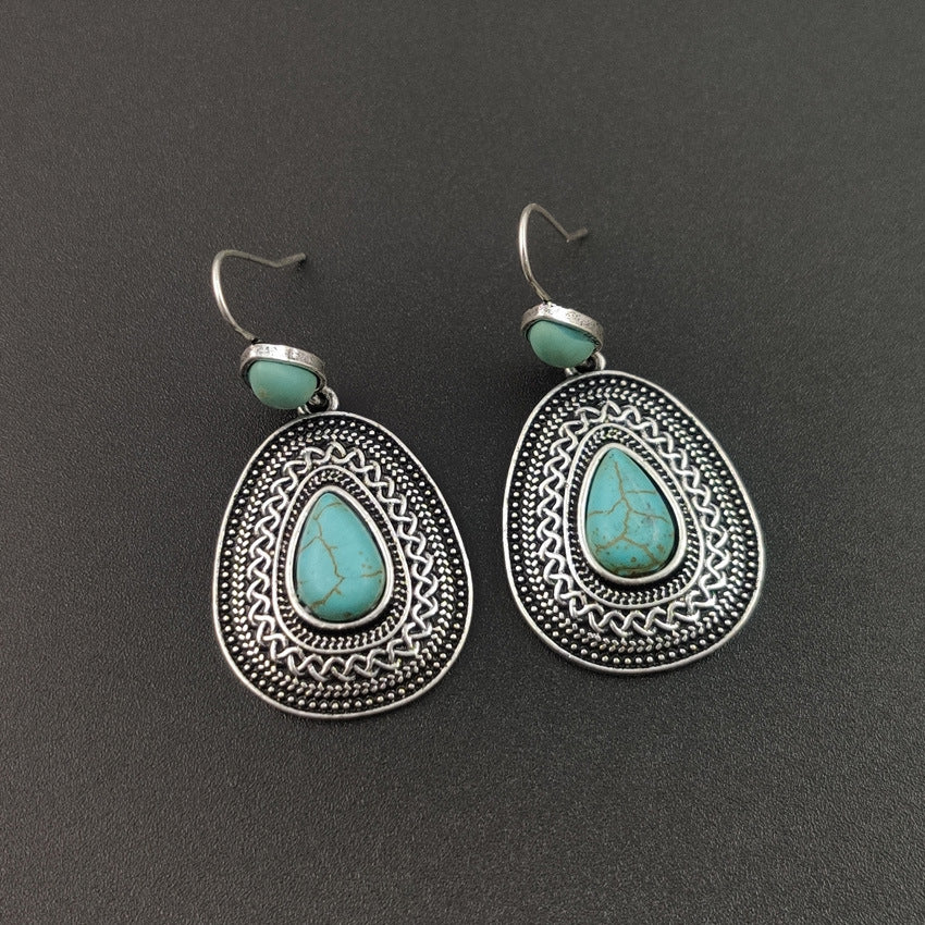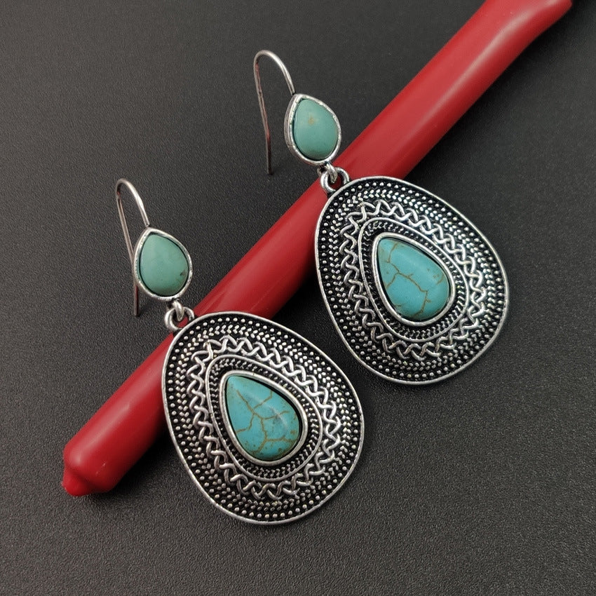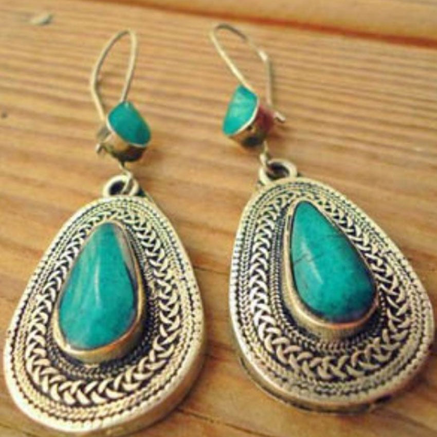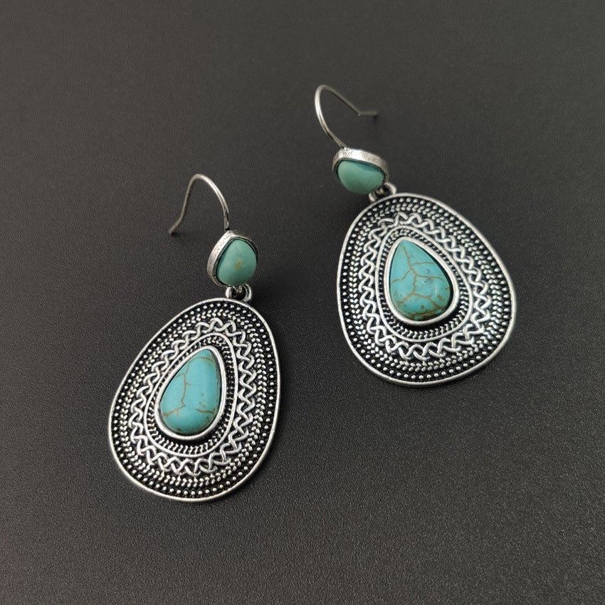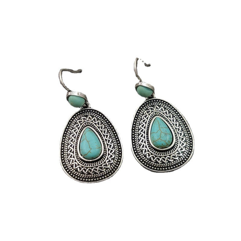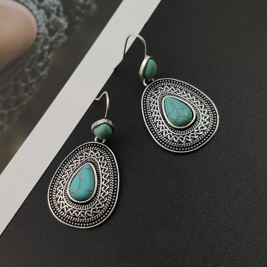 2020wish new European and American fashion turquoise exaggerated earrings Korean retro palace earrings spot wholesale