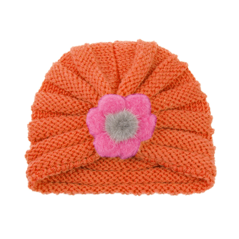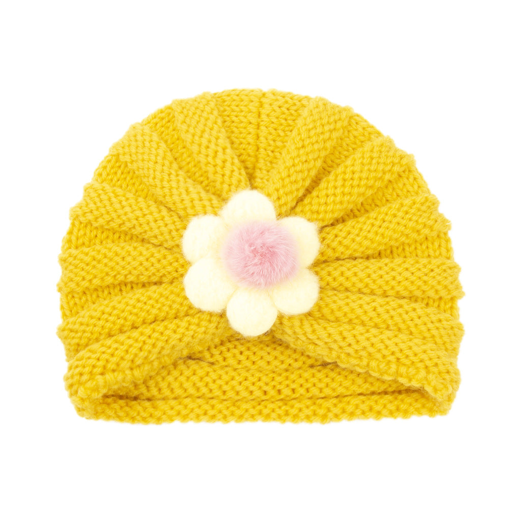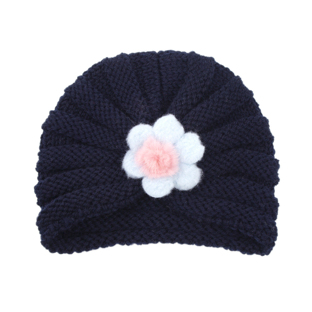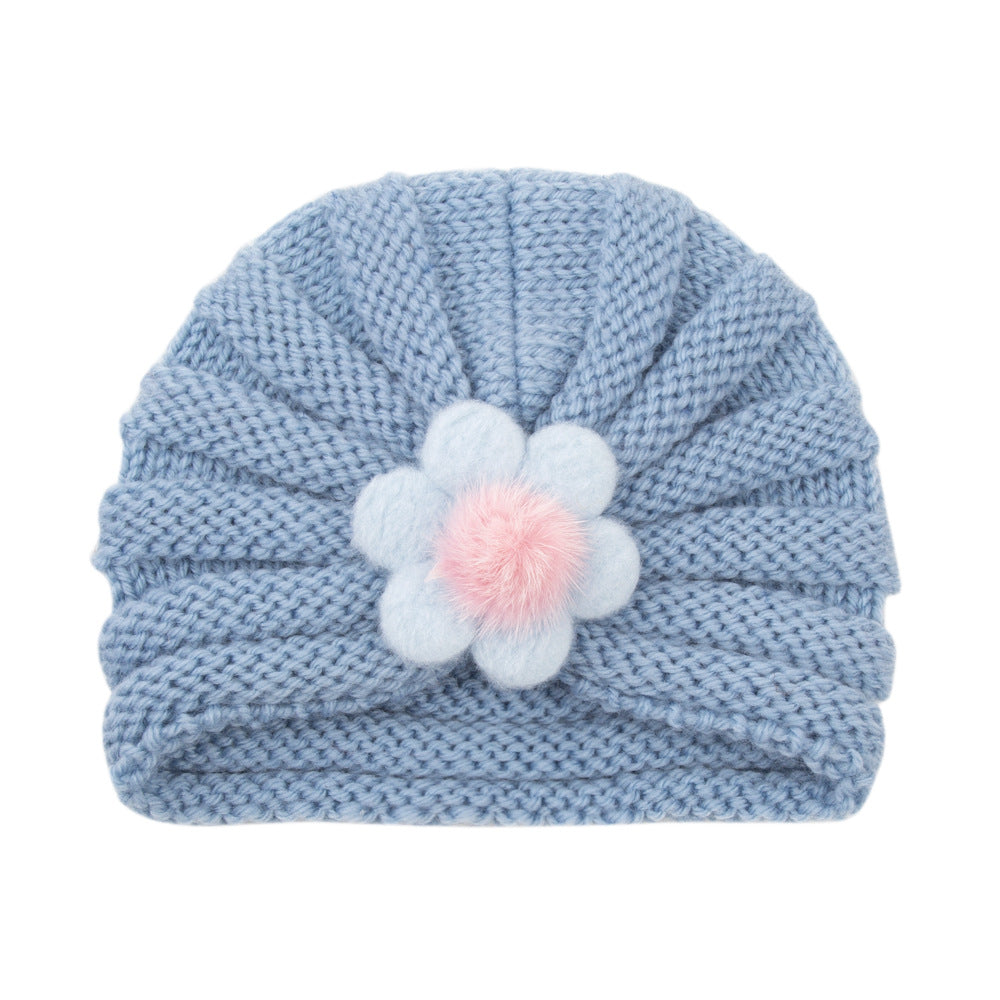 2021 Autumn and Winter European and American Children's Warm Knitted Hat 21 Colors Solid Color Infant Wool Big Flower Pullover Hat