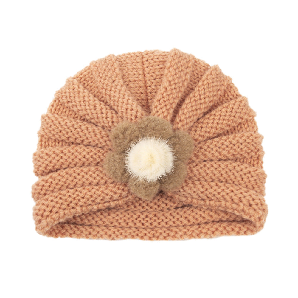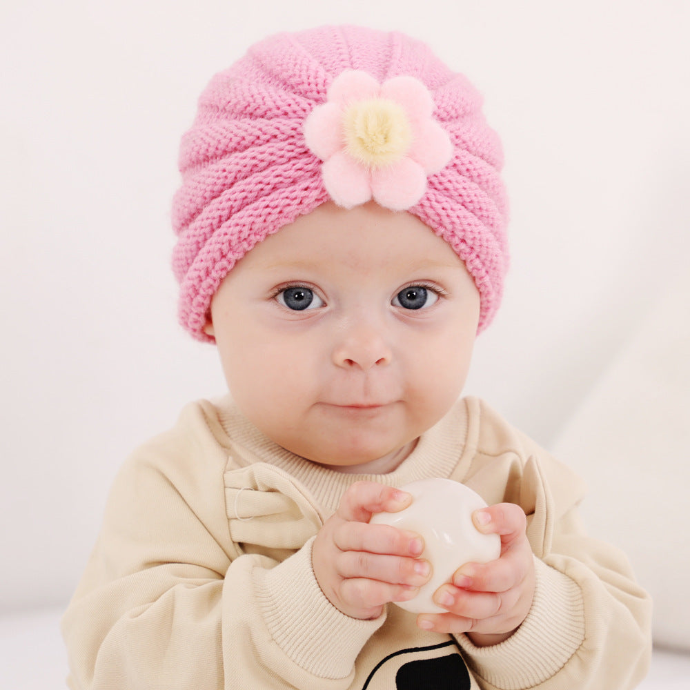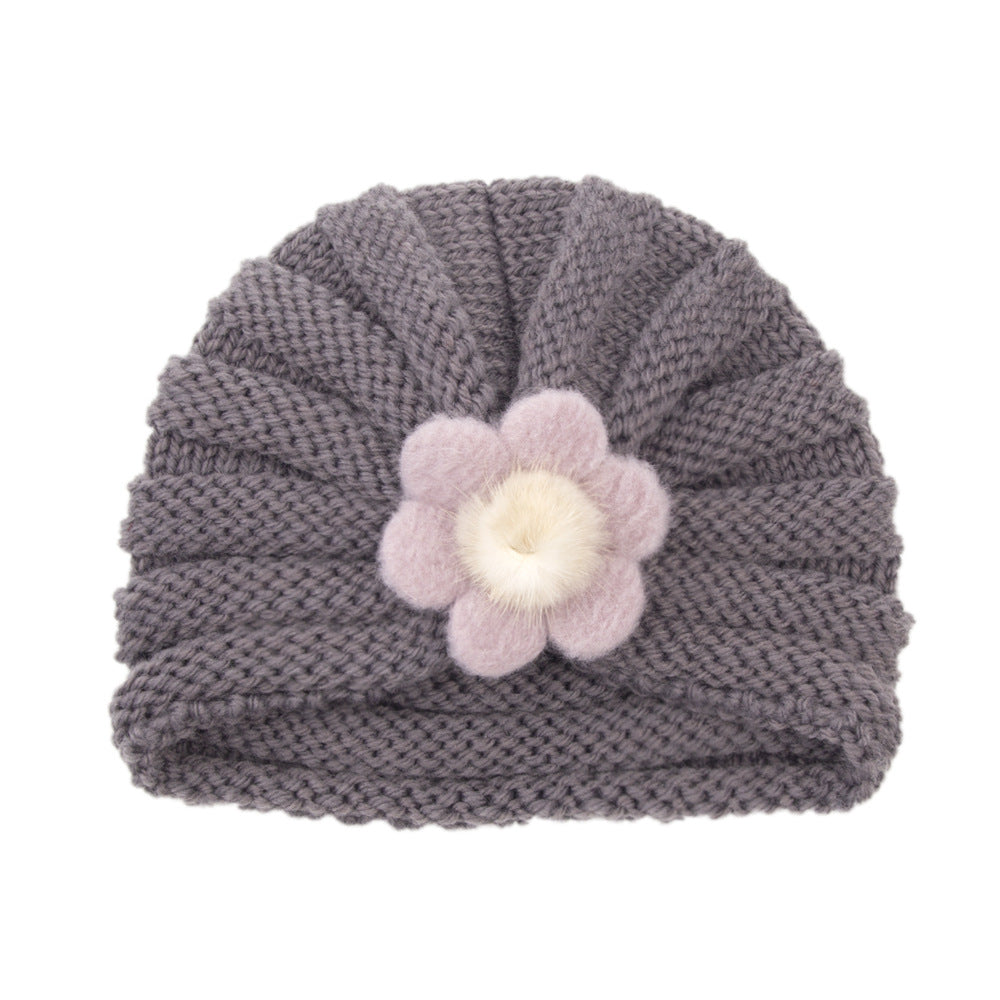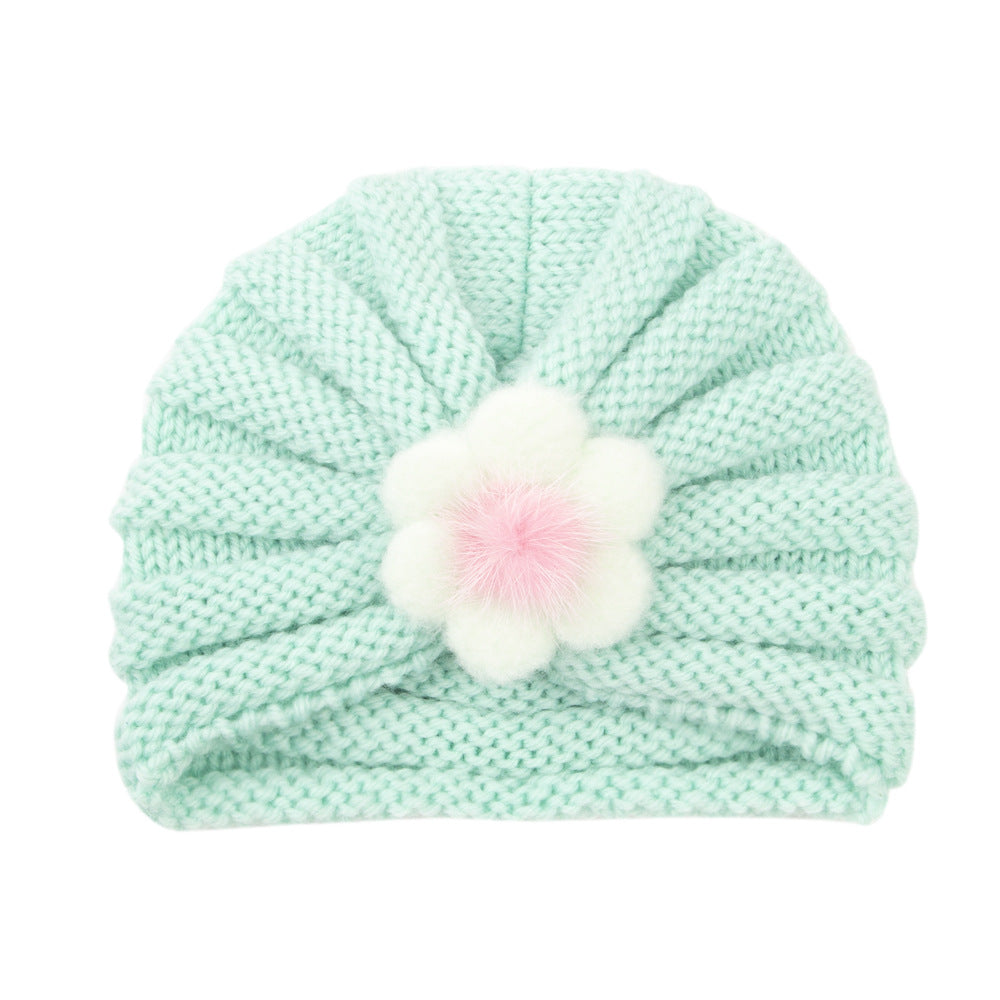 2021 Autumn and Winter European and American Children's Warm Knitted Hat 21 Colors Solid Color Infant Wool Big Flower Pullover Hat