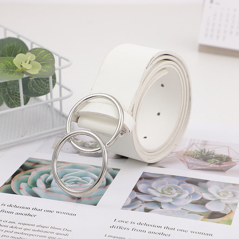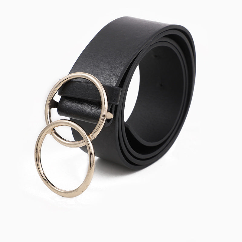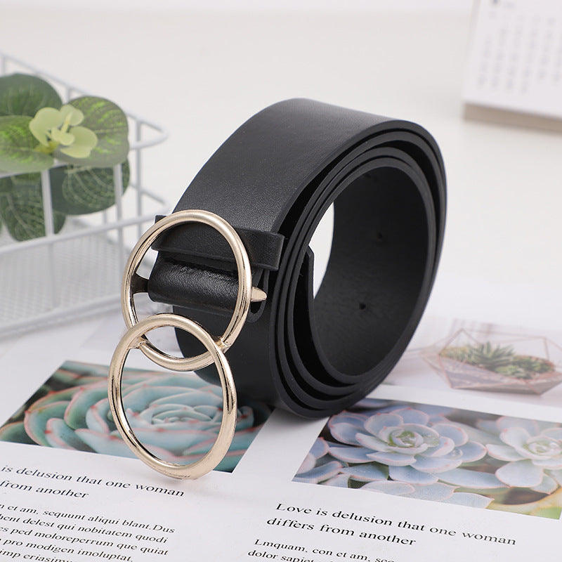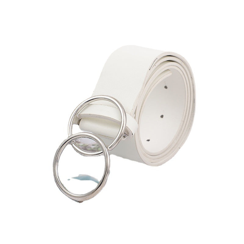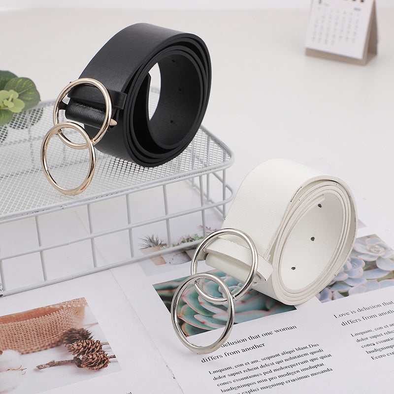 2021 European and American cross-border creative double circle buckle belt women's fashion decoration dress jeans pu belt