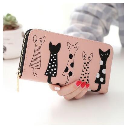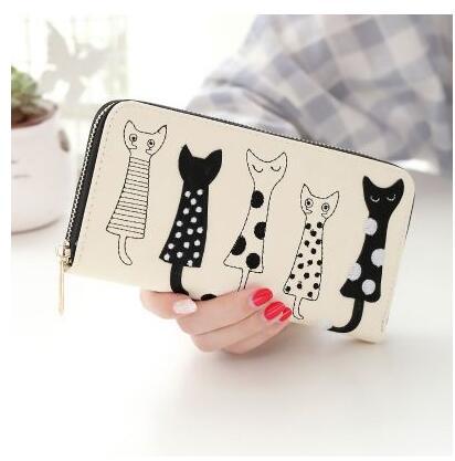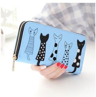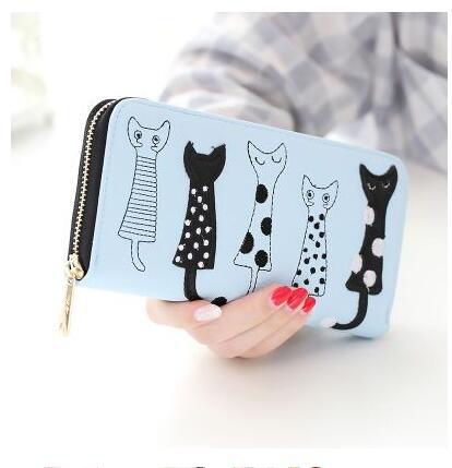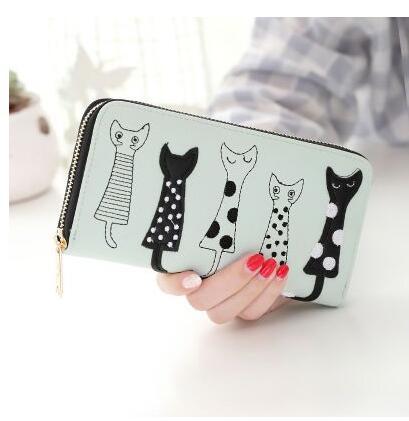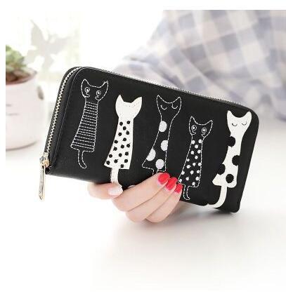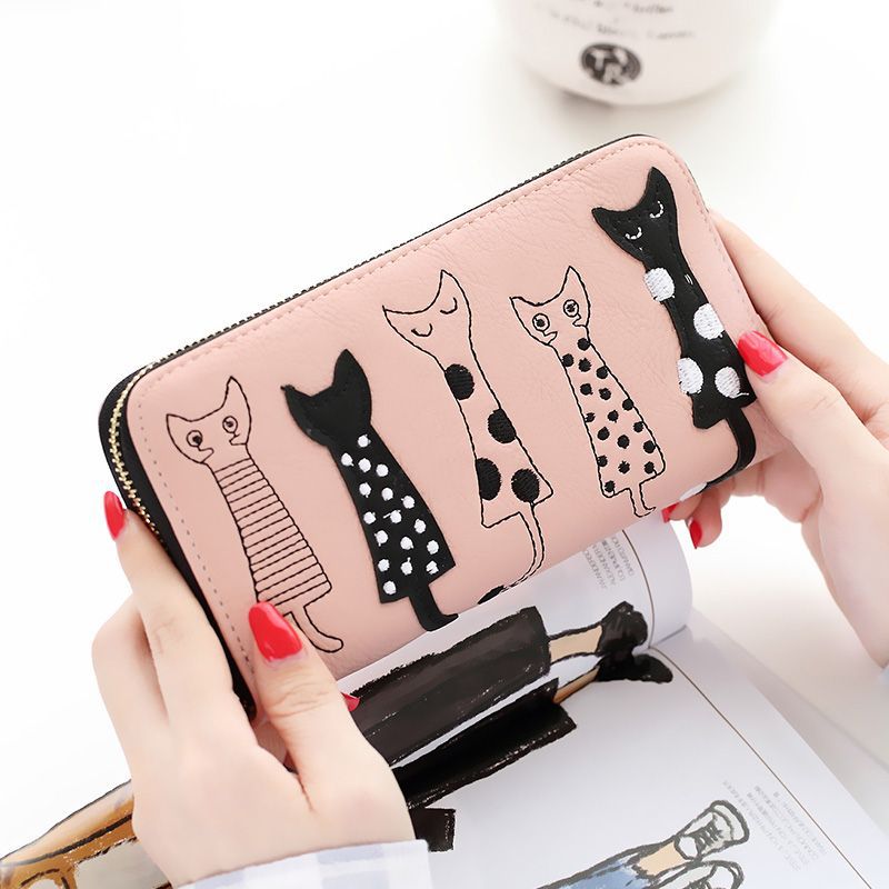 2021 European and American hot style cat cute cartoon embroidery thread ladies long wallet women's long clutch bag coin purse