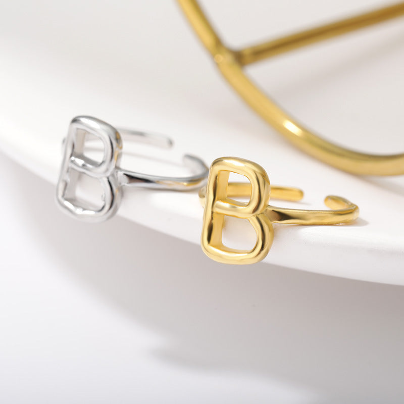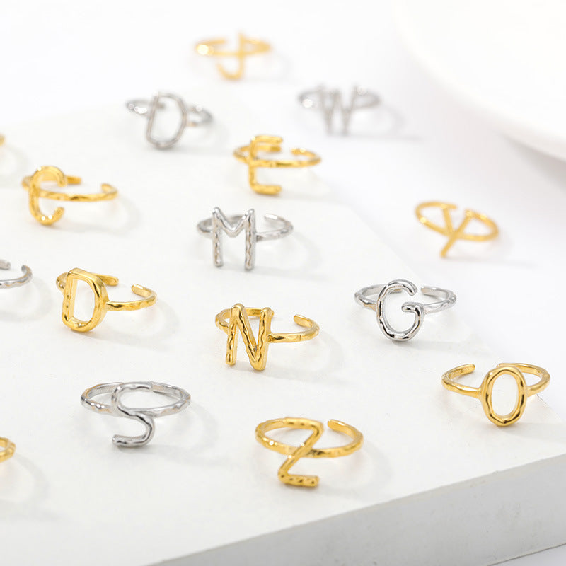 2021 European and American new stainless steel thread English letter ring adjustable ring men and women couple open ring