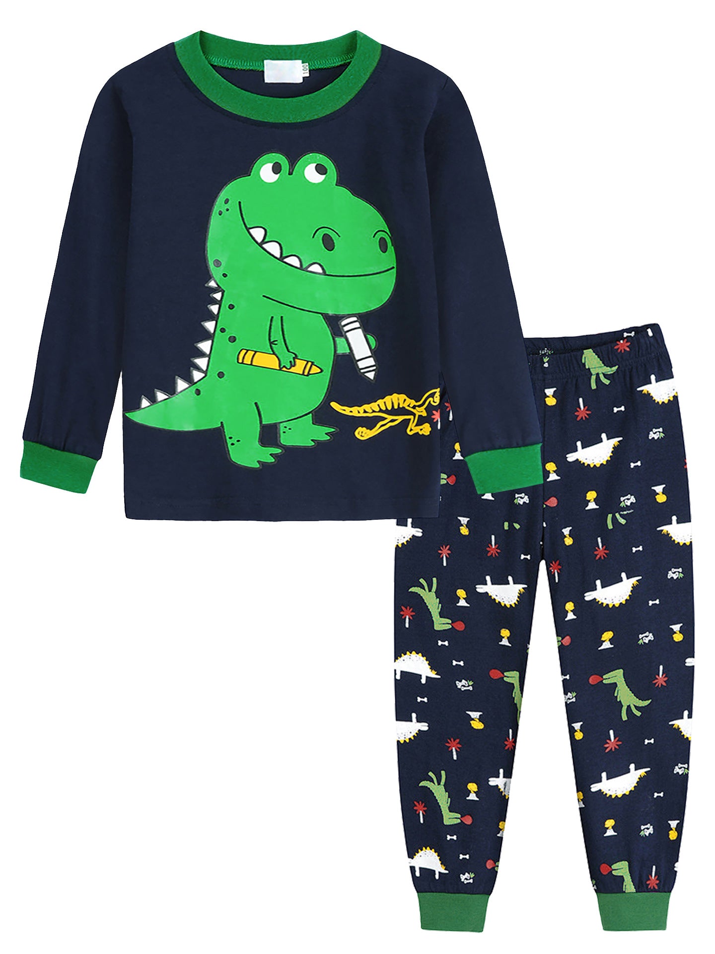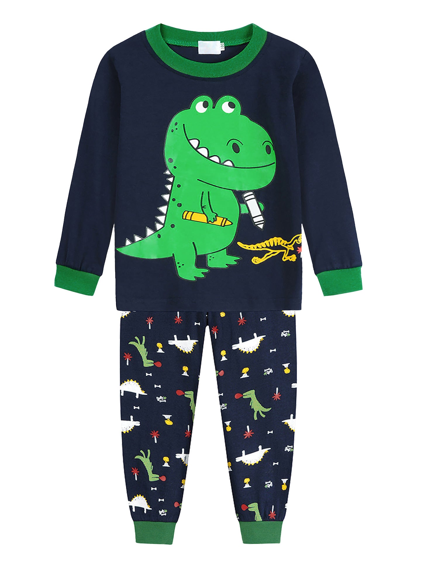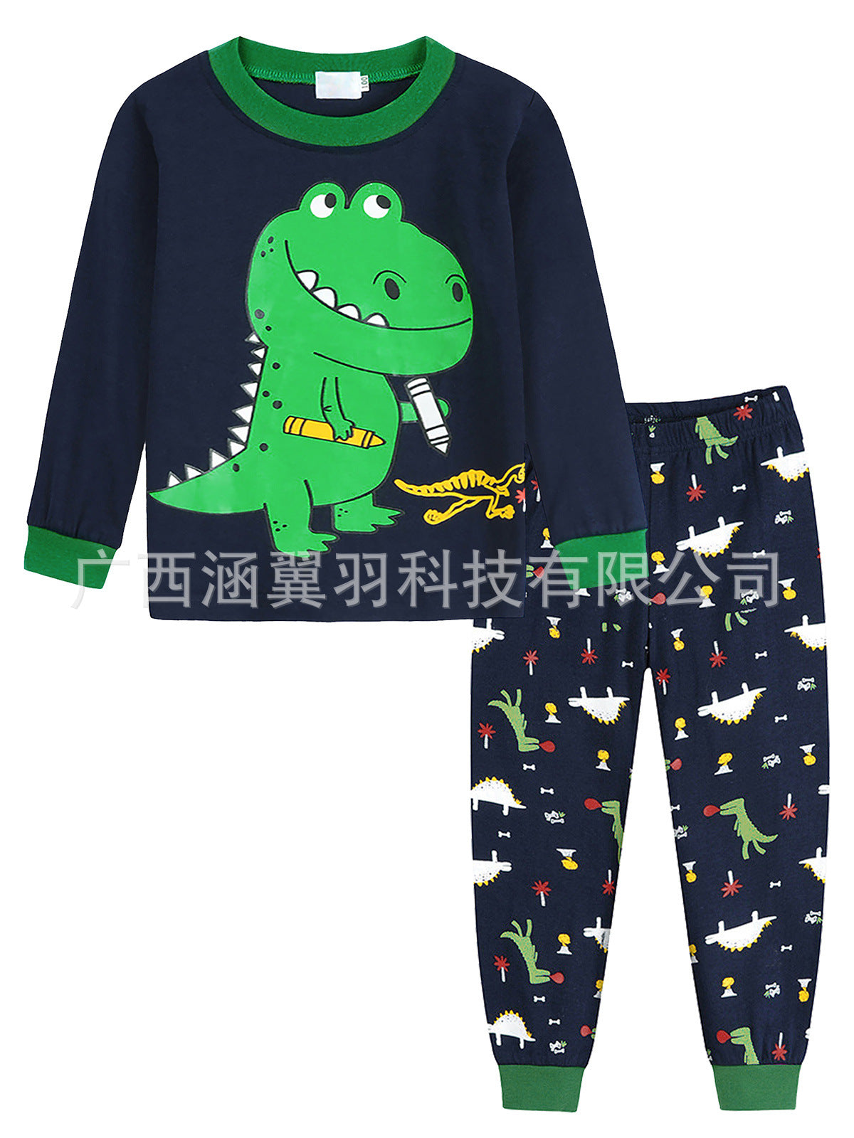 2021 Foreign Trade Hot Choice Amazon Autumn and Winter Boys and Girls Homewear Set European and American Dinosaur Print Children's Pajamas