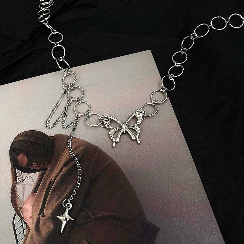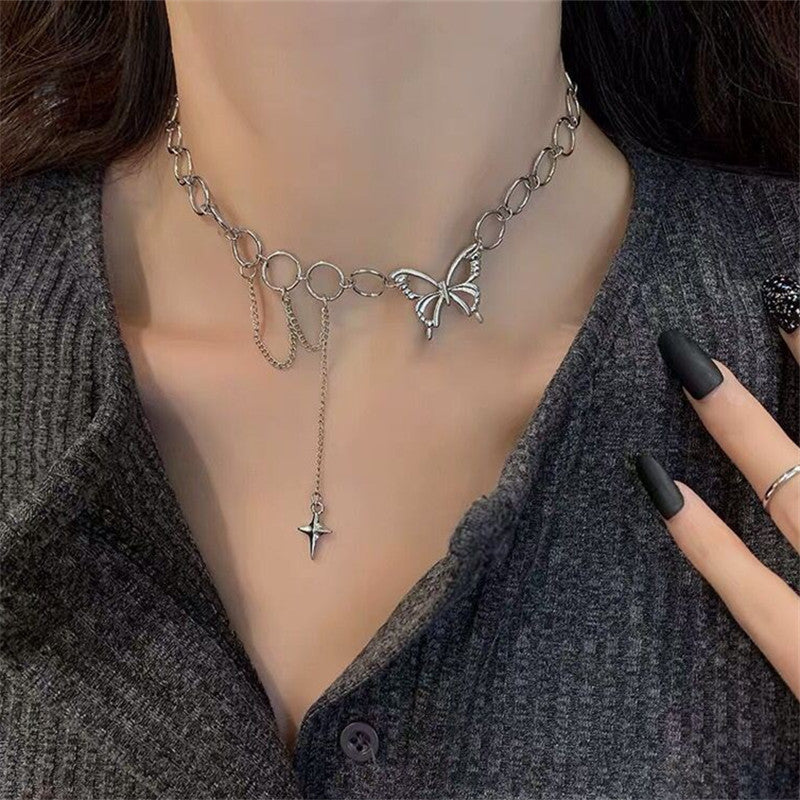 2021 New Butterfly Necklace Personality Clavicle Chain Internet Celebrity Ins Cool Wind Necklace Trendy Niche Design Sense Necklace