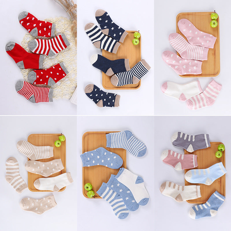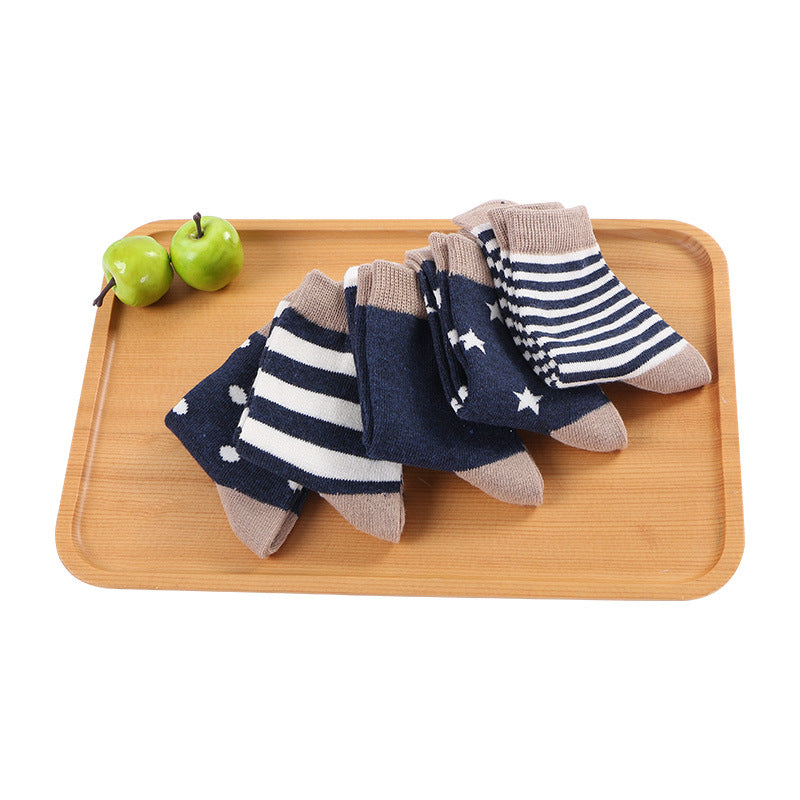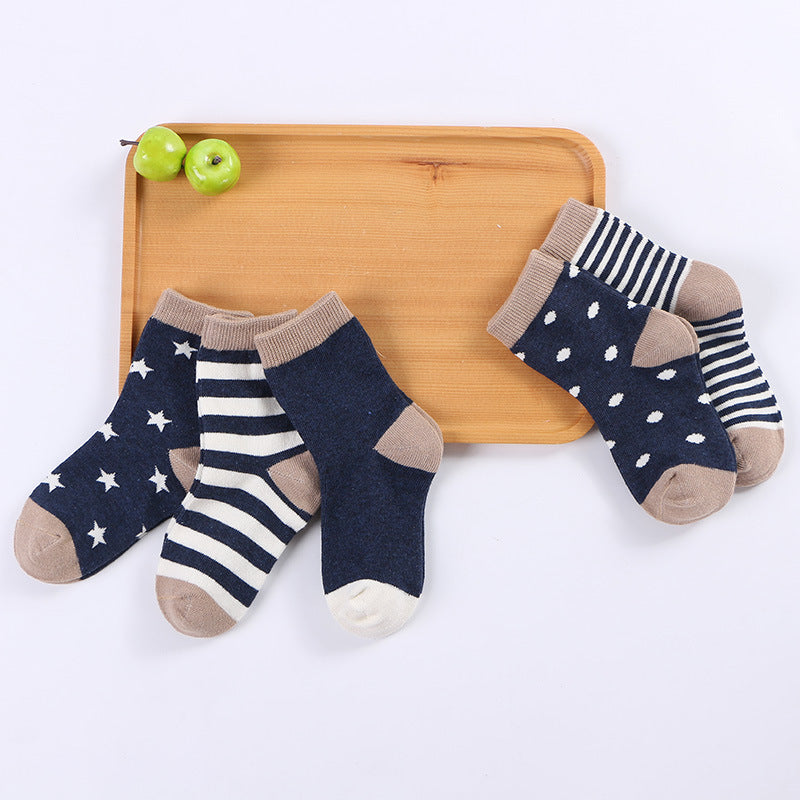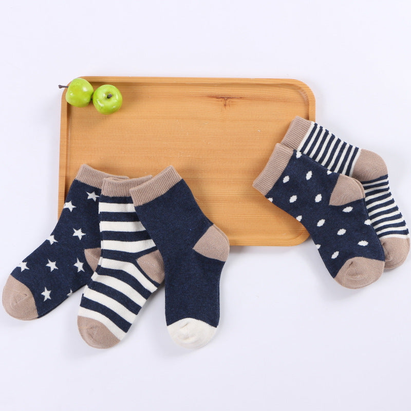 2021 new children's socks autumn and winter blue spotted striped star socks breathable and sweat-absorbing cartoon cute children's baby socks