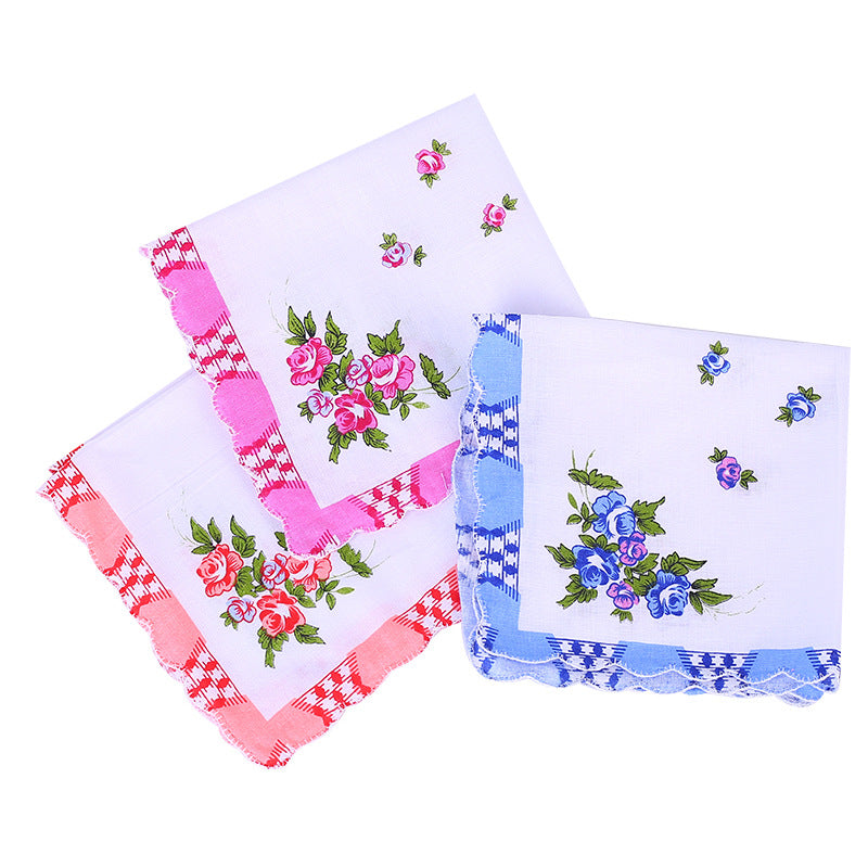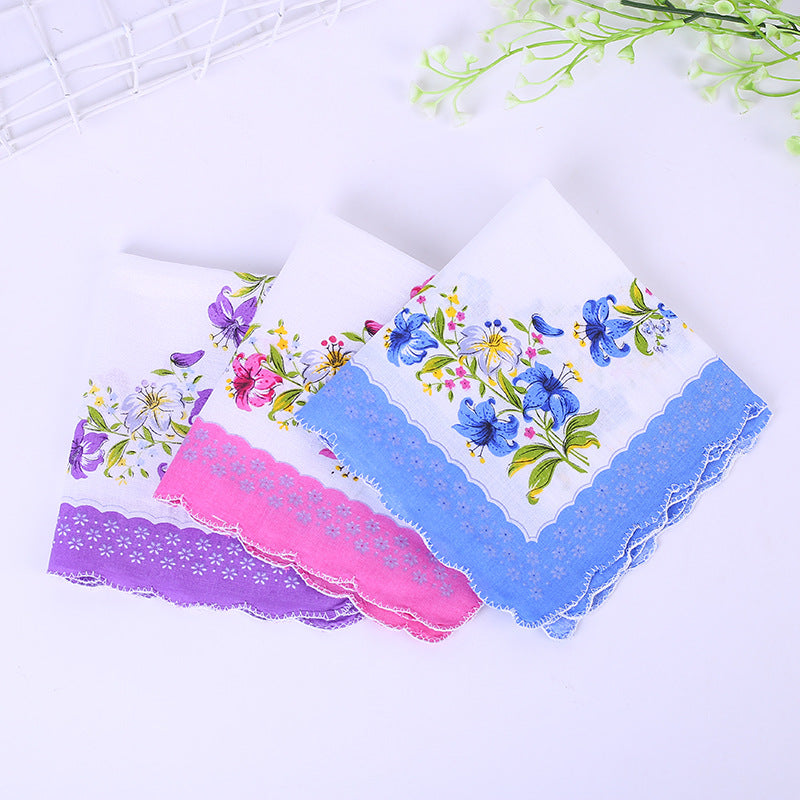 Item No.: Ladies crescent moon handkerchief pure cotton small handkerchief, floral small fresh handkerchief
