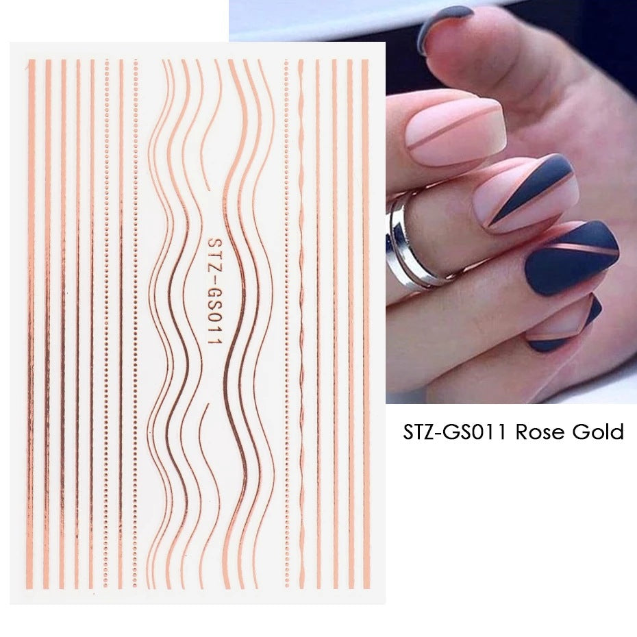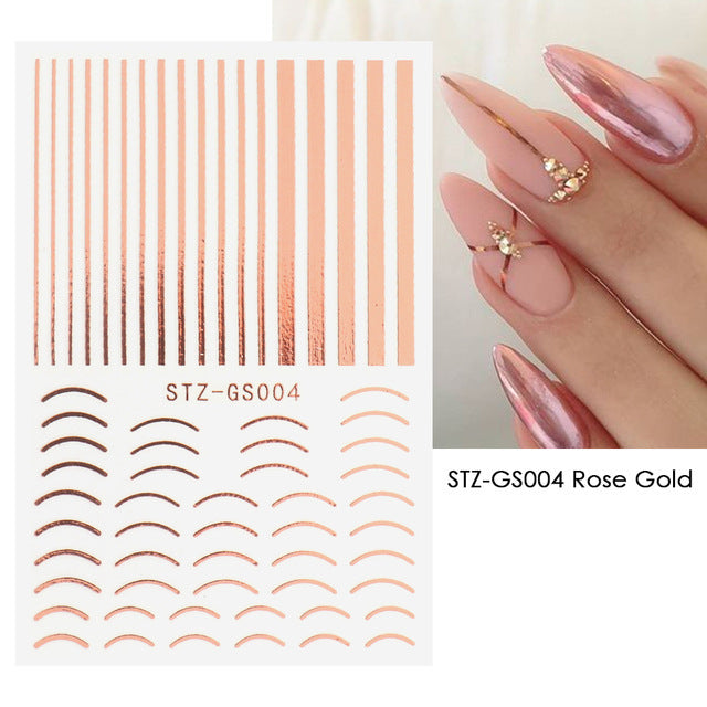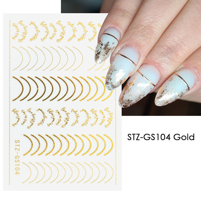 2021 new cross-border manicure back adhesive stickers gold and silver stickers French nail shape imitation metal accessories line nail