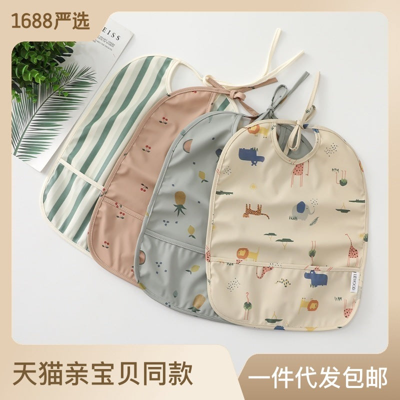 2021 new Danish baby eating bib baby pu waterproof bib children's complementary food anti-dirty saliva pocket