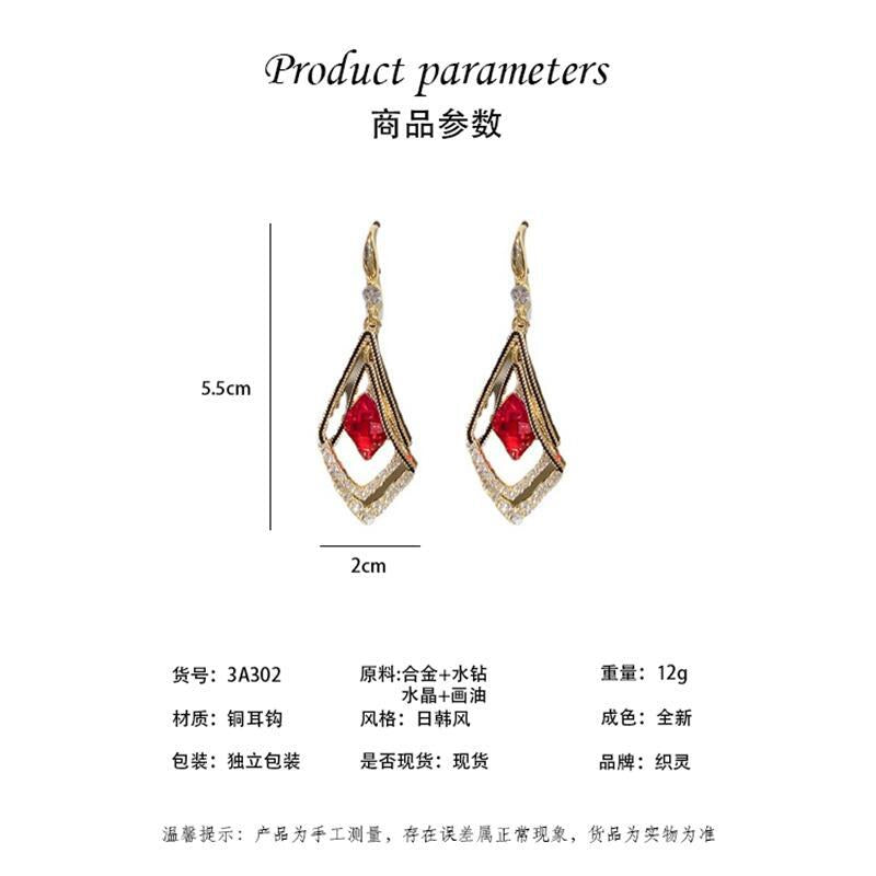 2021 new earrings femininity net red Korean red crystal double rhombus geometric earrings versatile red earrings