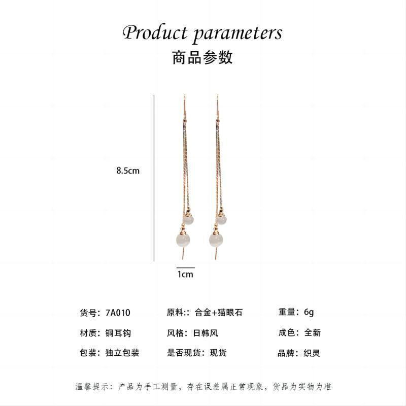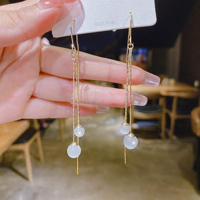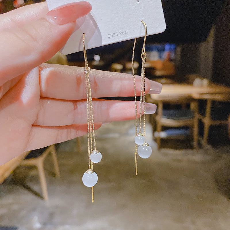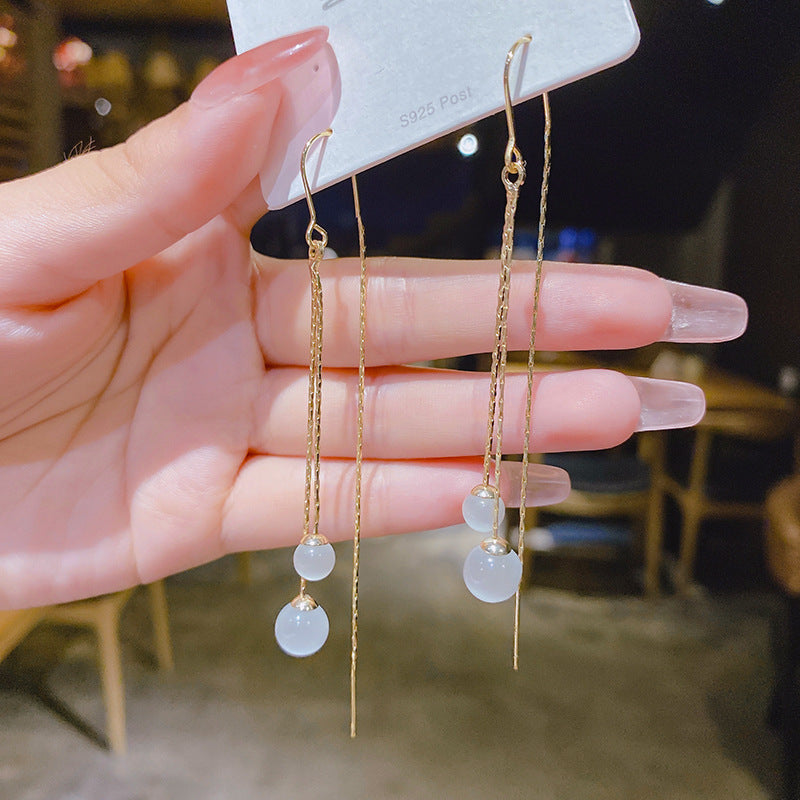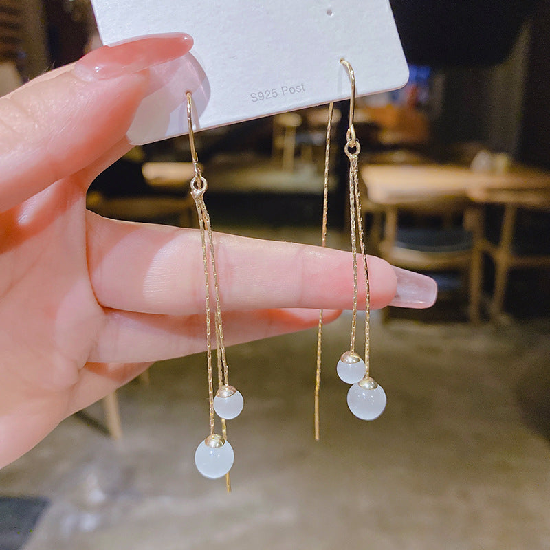 2021 new fashion tassel opal super fairy ear wire s925 silver needle long style slim net red temperament earrings
