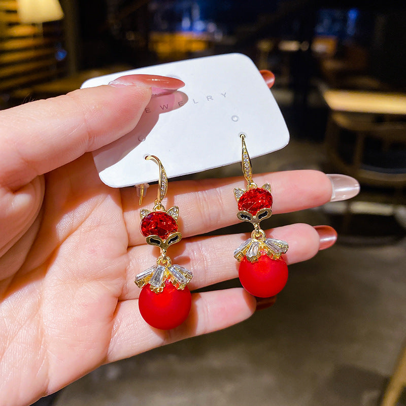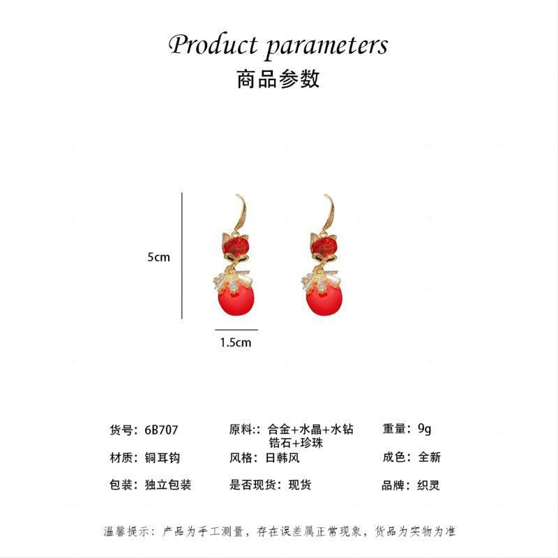 2021 new Korean Dongdaemun red fox earrings pearl tassel earrings trendy super fairy face thin earrings women