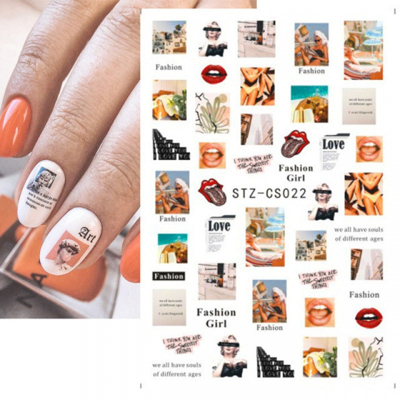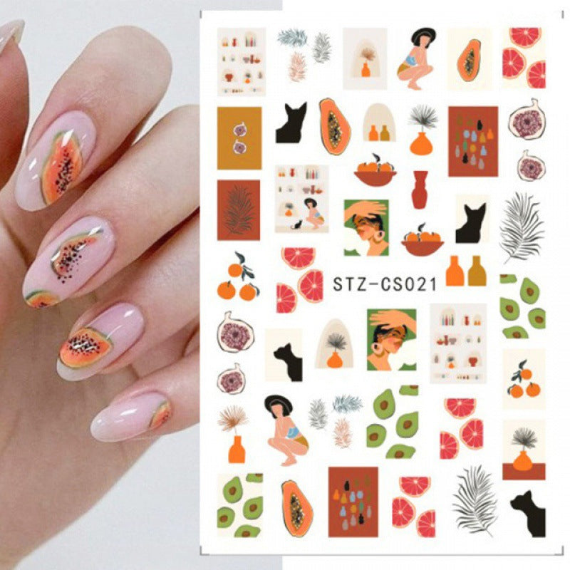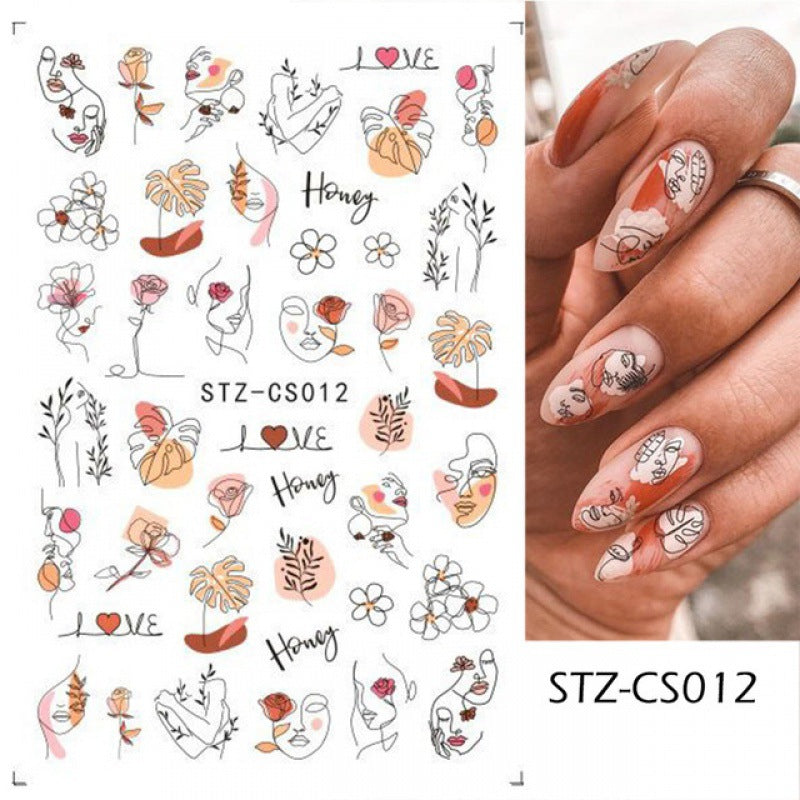 2021 new nail art stickers 3D flame characters flowers abstract art male and female nail decals ins