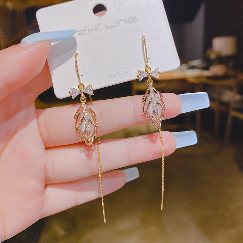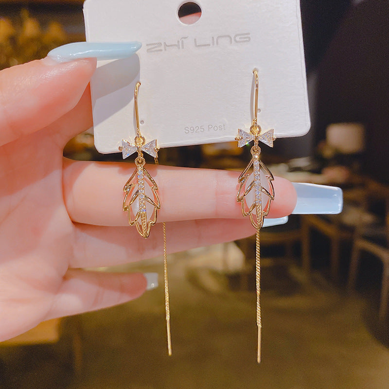 2021 new personality cold wind leaf earrings all-match high-end temperament autumn and winter earrings for women