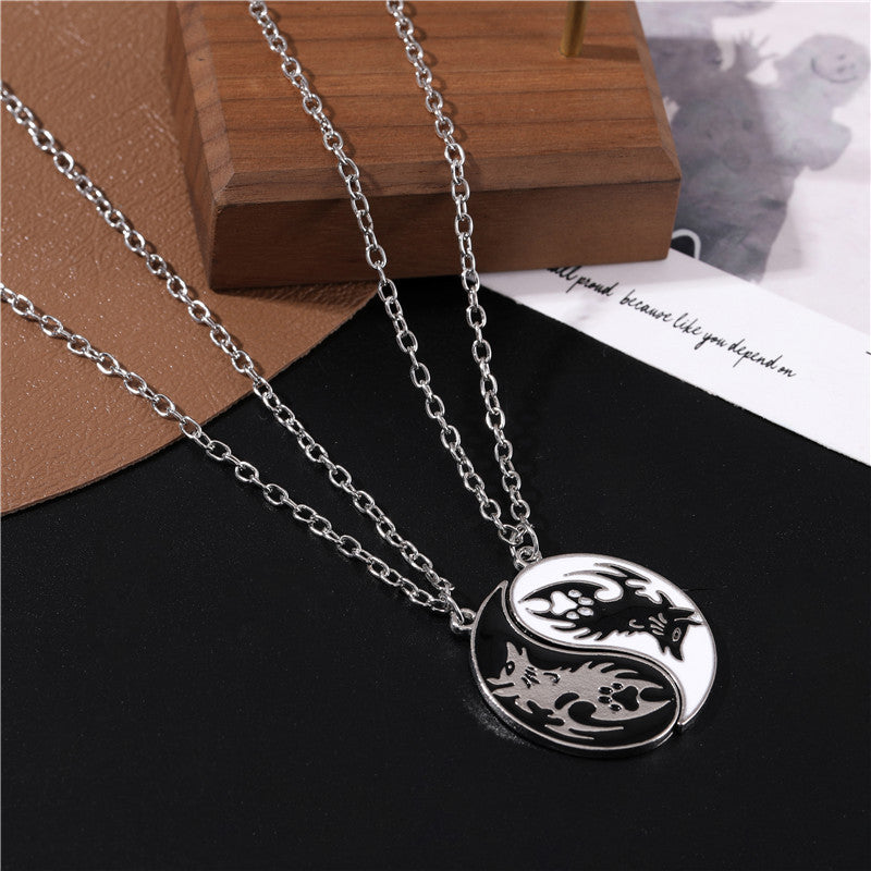 2021 new retro fashion style Tai Chi black and white wolf head stitching male and female students creative drop oil necklace