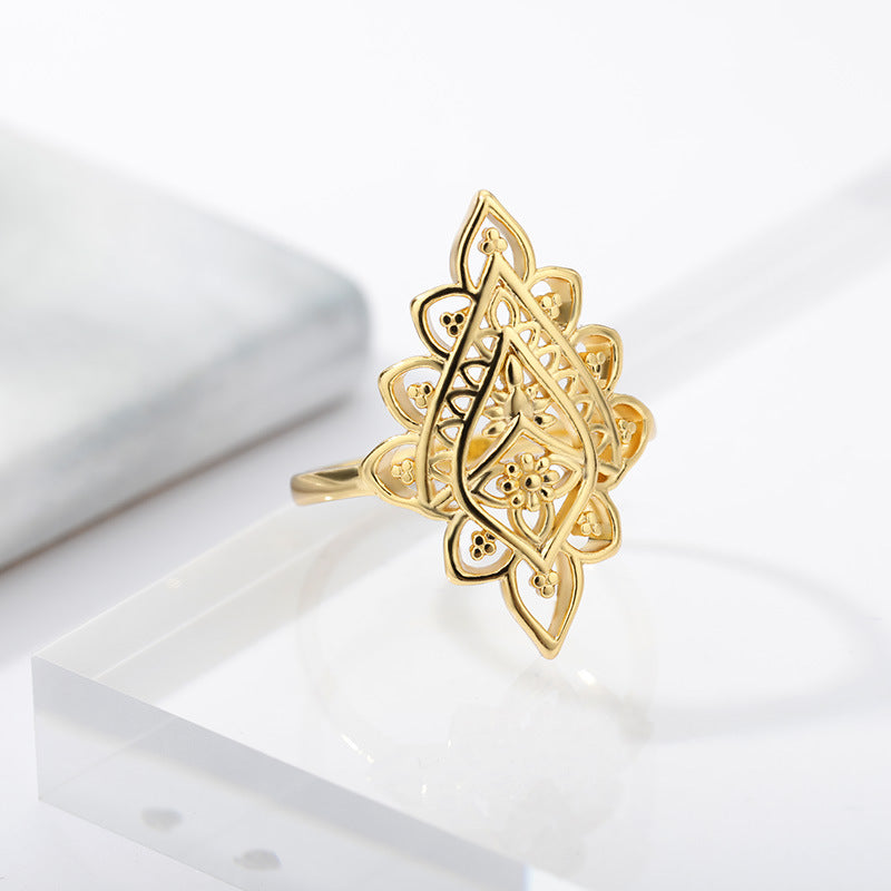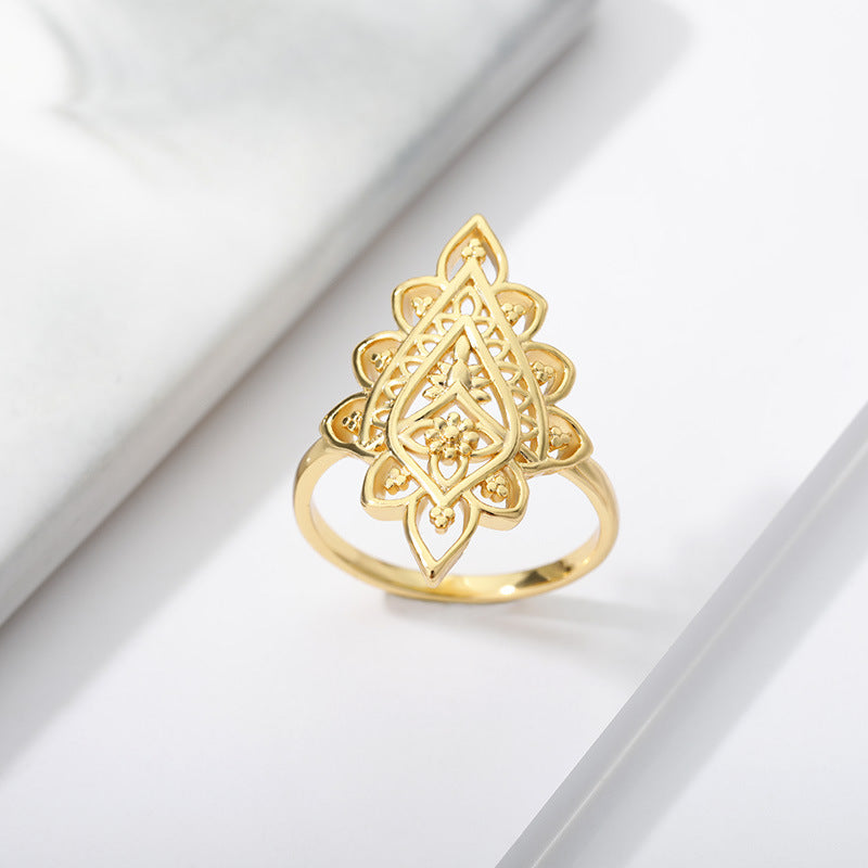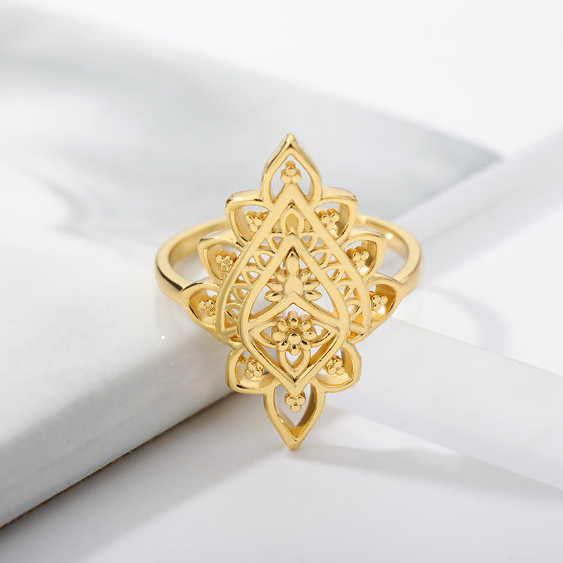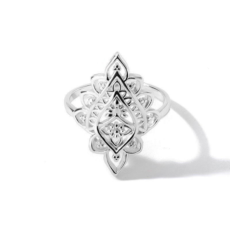 2021 new retro rhombus lace ring women's ins fashion geometric hollow ring creative gift